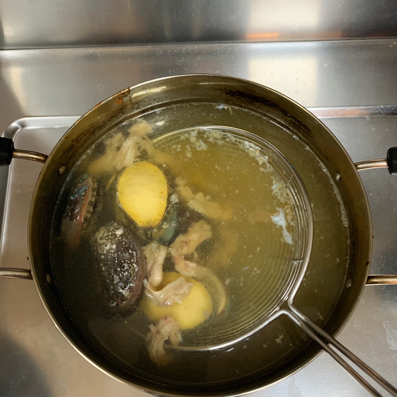 步骤3、鲍鱼和鸭掌用盐水焯下<千万别煮过熟>