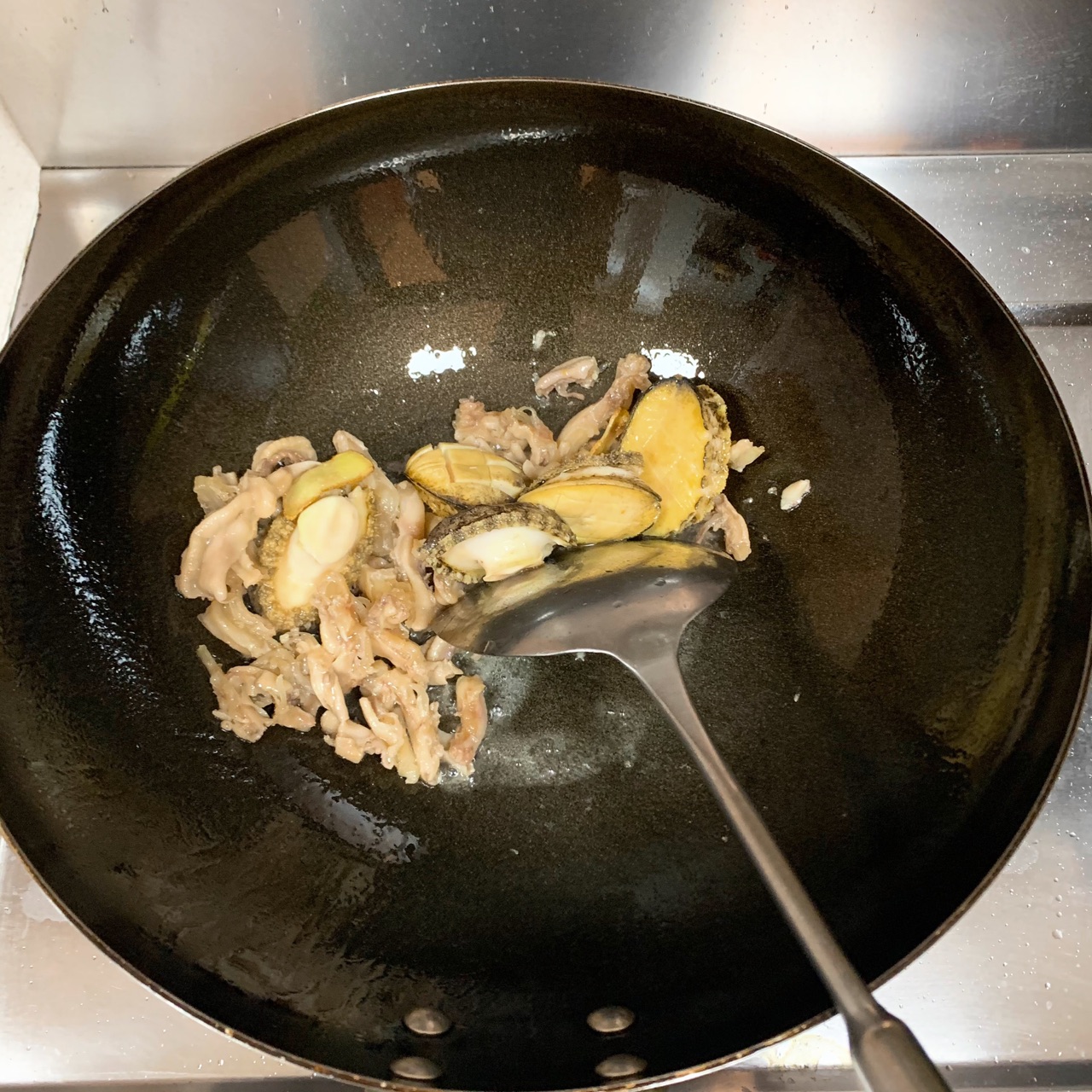 步骤6、Ⅰ鲍鱼和鸭掌下油锅翻炒一下Ⅱ捞出过水备用