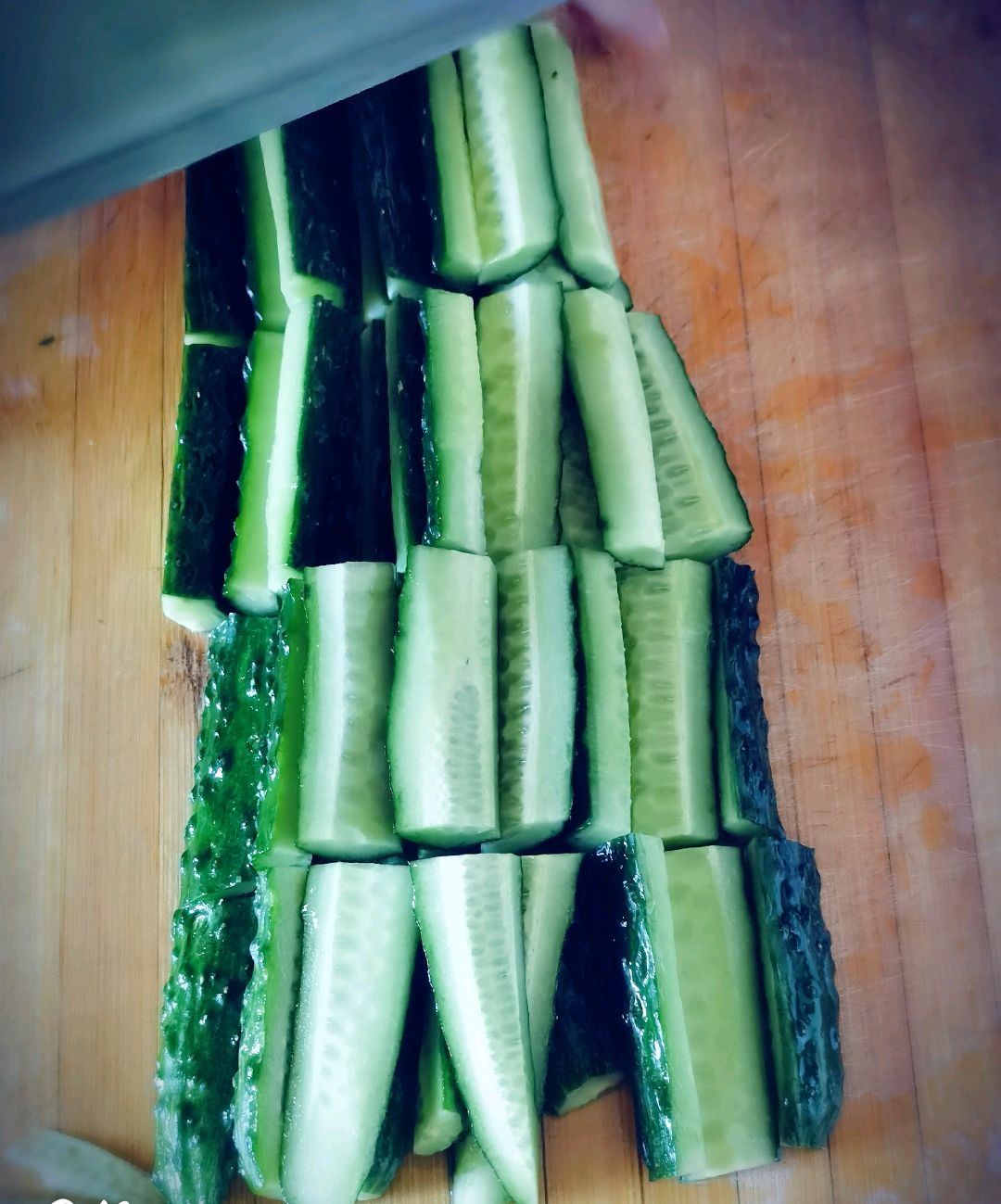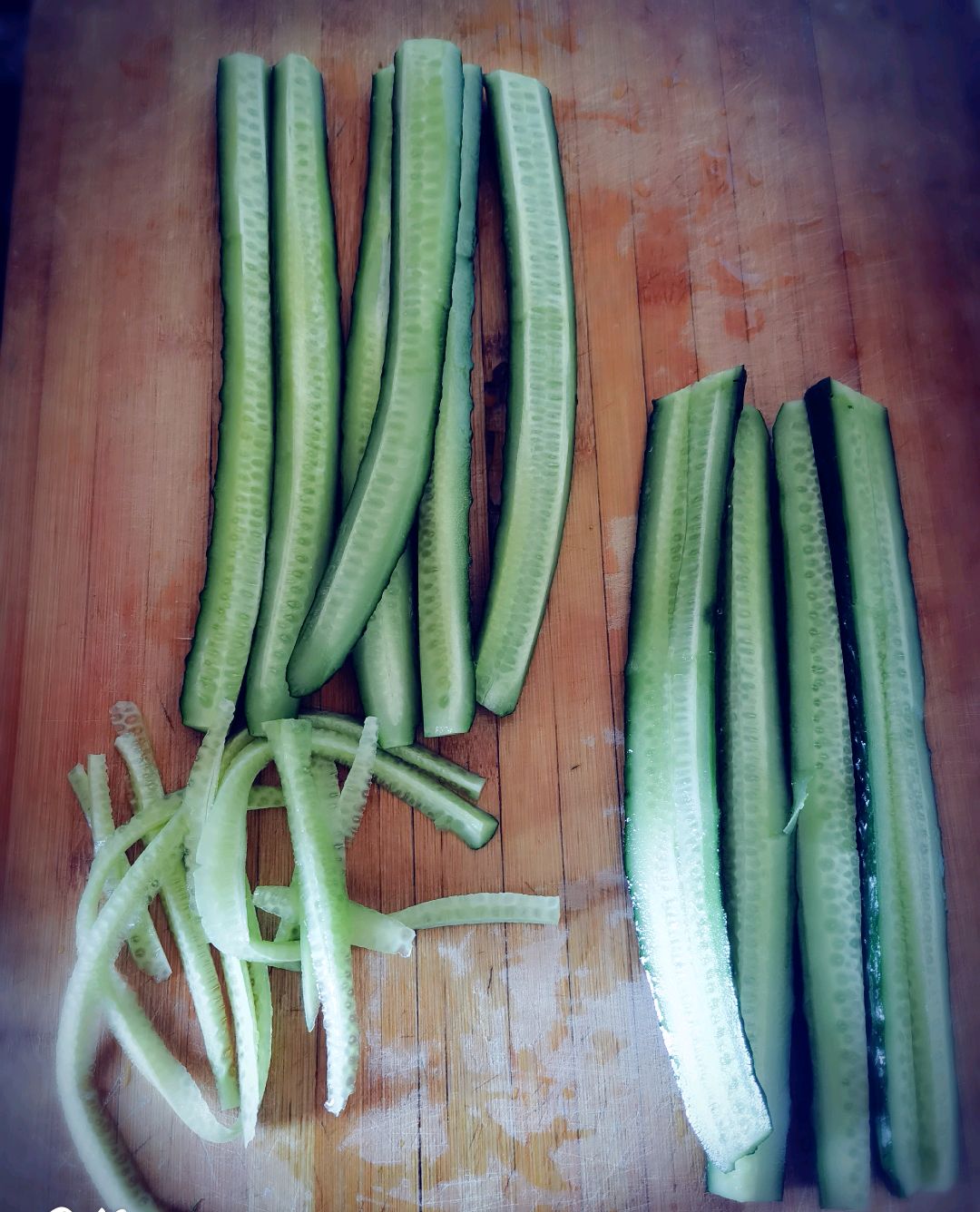 步骤1、黄瓜竖着中间切开,把瓤去掉
