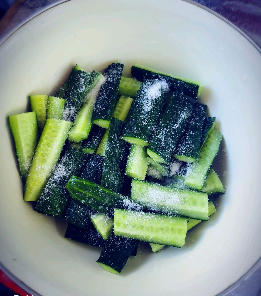步骤3、撒上盐拌匀,腌至少半小时以上