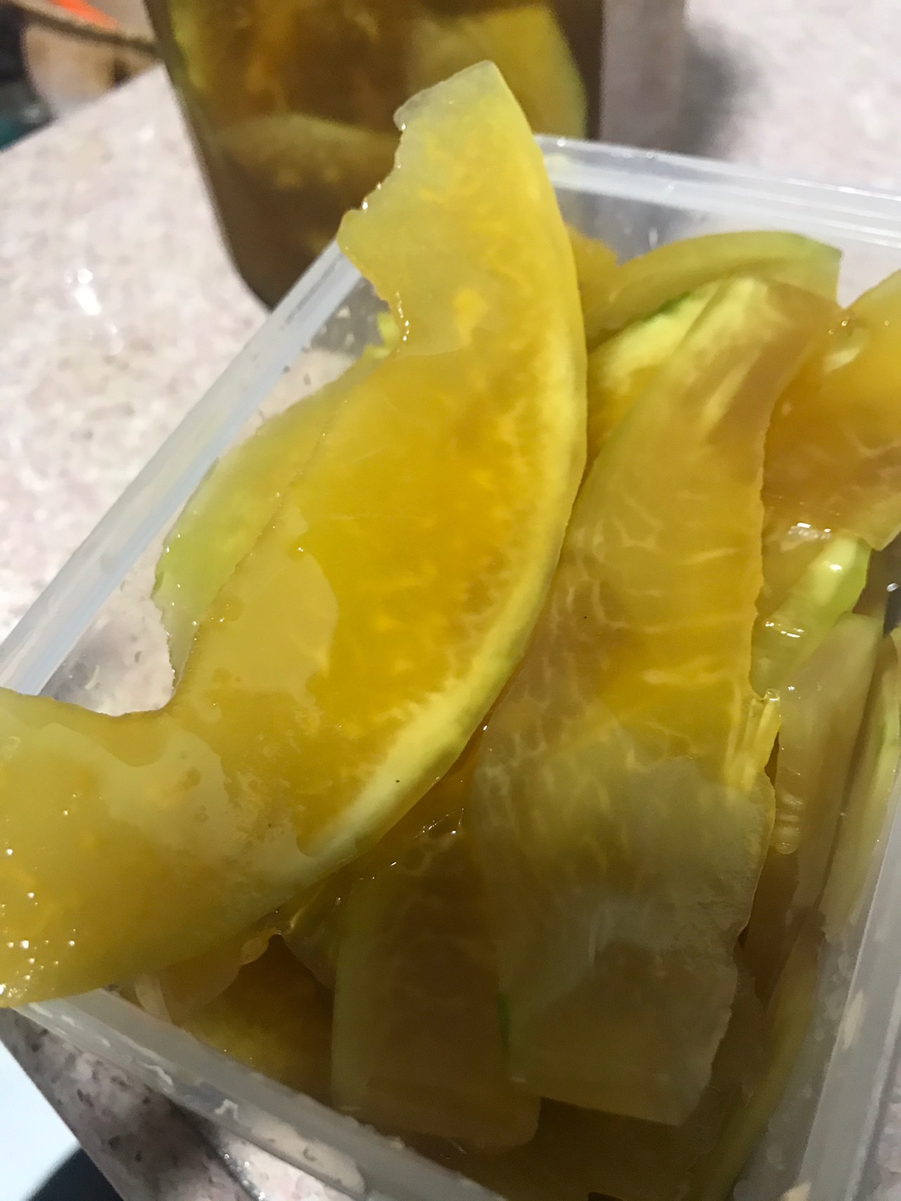 步骤4、一般淹两天就可以吃了,尽量把没淹到糖的木瓜搅拌下去