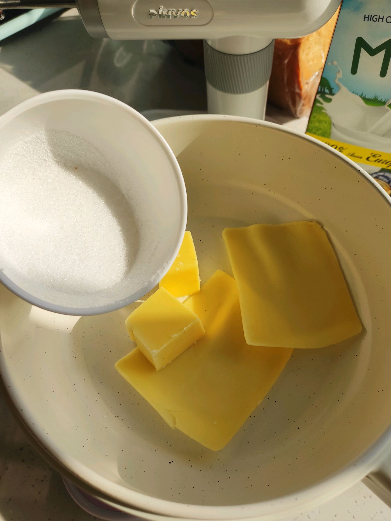 辅料:牛奶60毫升、黄油30克、糖30克、杏仁片适量
