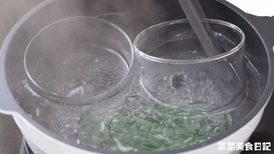 步骤3、煮一锅沸水,加入少许盐,放入藕片焯烫30秒,挤干水份待用