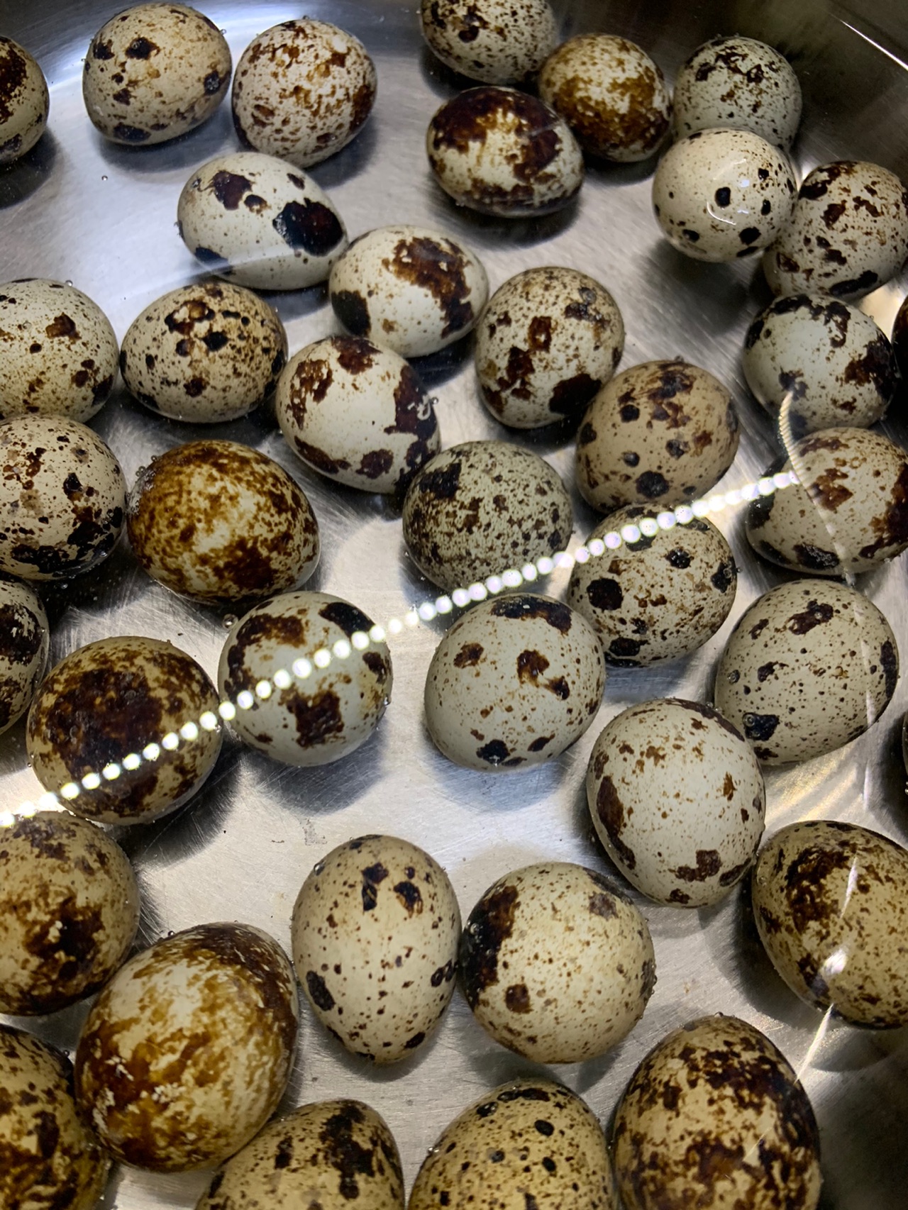 步骤2、鹌鹑蛋吸干净,放锅里煮熟
