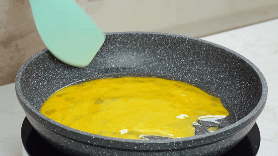 步骤3、热锅倒油,下蛋液炒至微微凝固后盛出