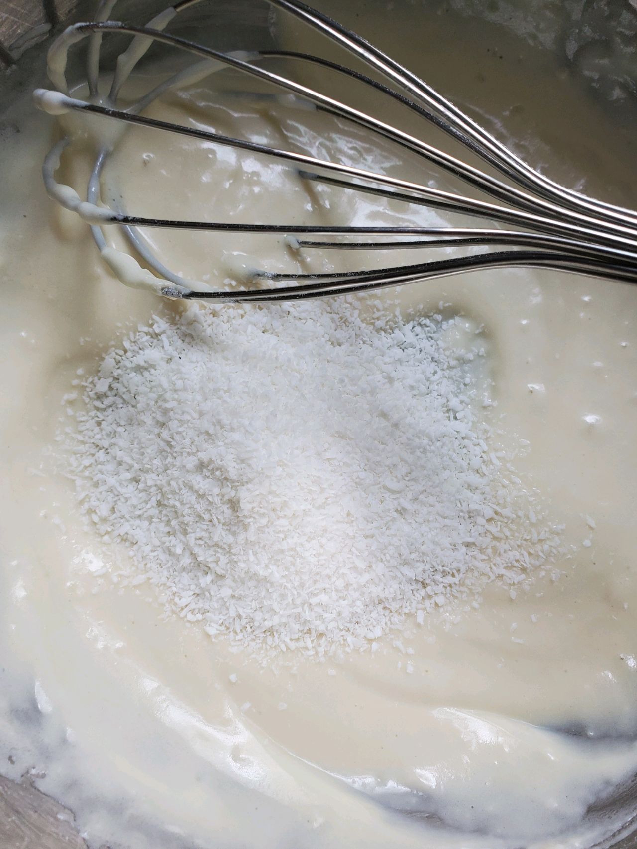 步骤3、再加入椰蓉混合均匀
