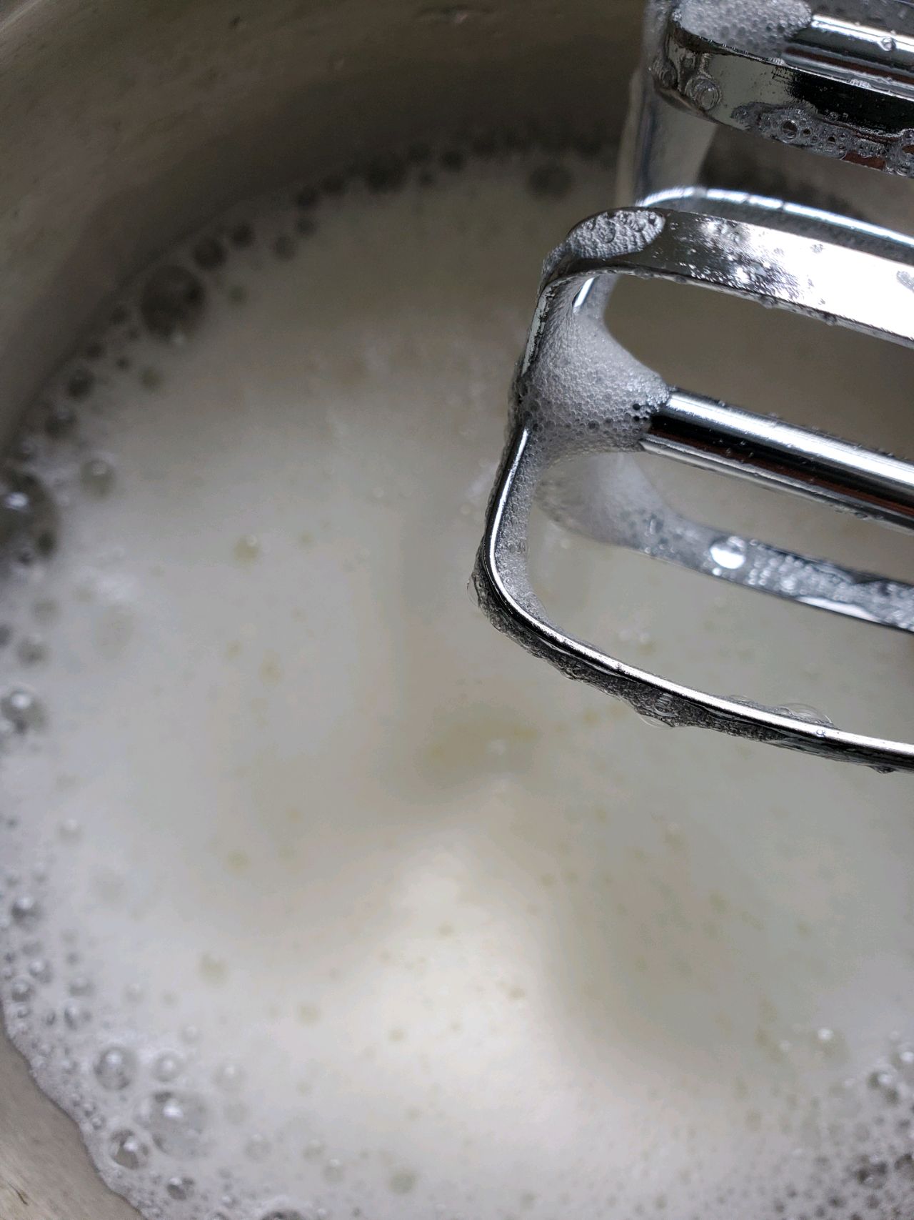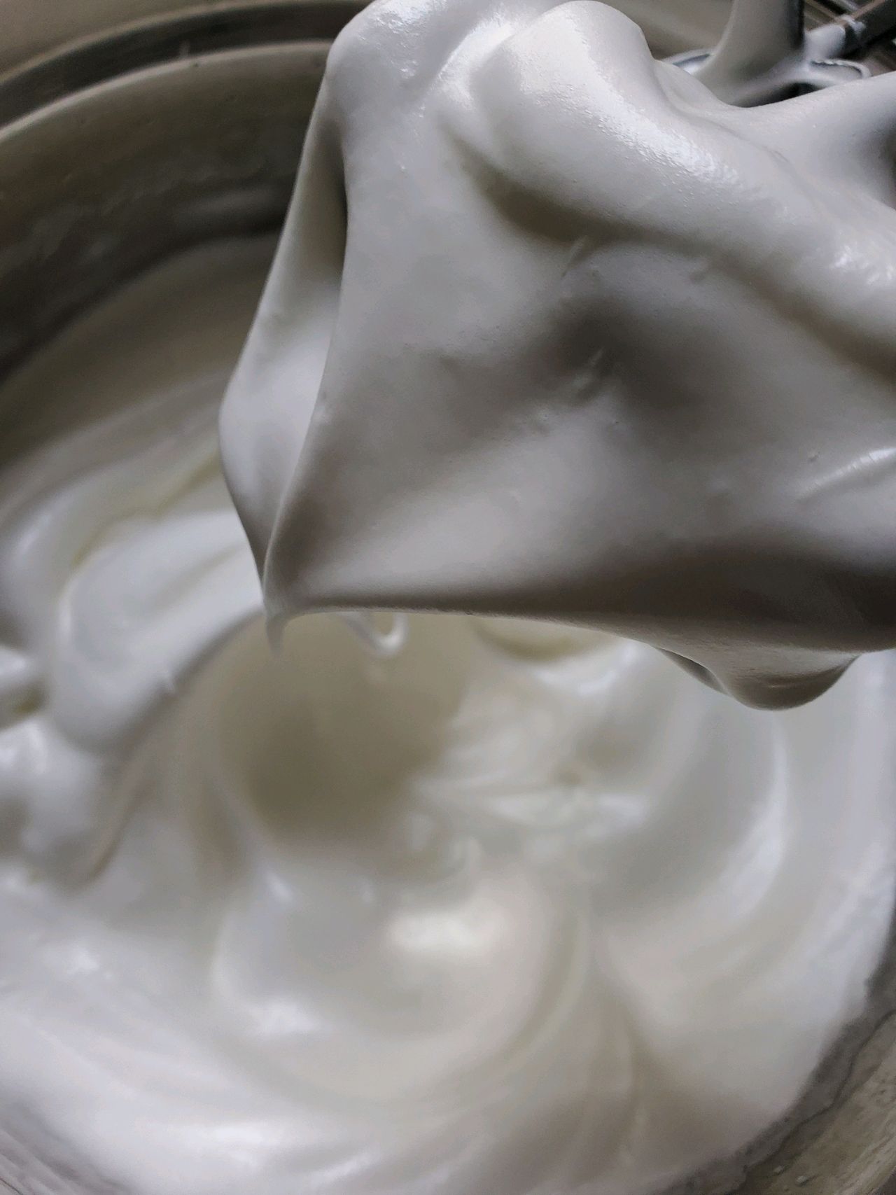 步骤5、4个蛋清加两滴白醋白糖分两次加入