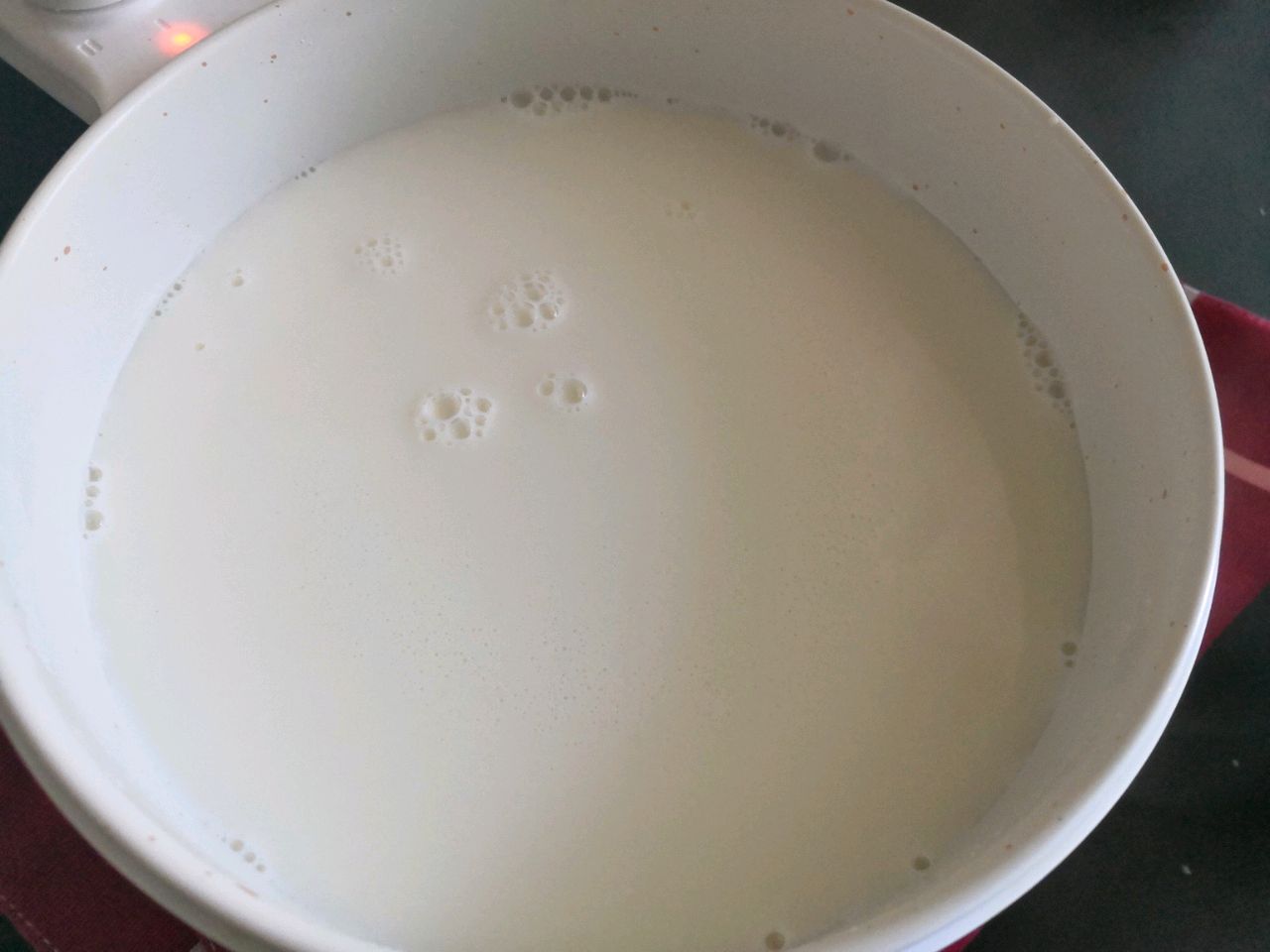 步骤3、椰子汁,椰浆,淡奶油,糖倒入,搅拌融化,再把泡软的吉利丁片倒入,融化后即可,