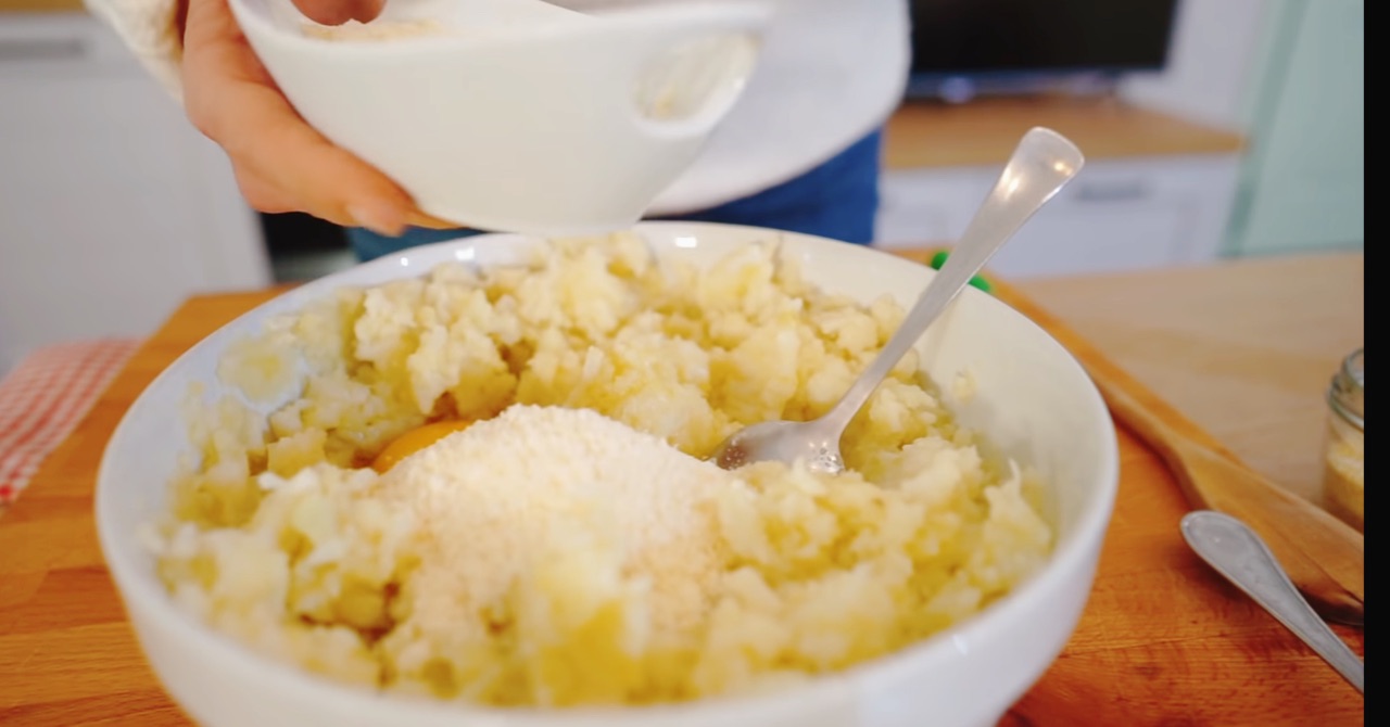 步骤4、煮软以后可以用叉子或勺子或什么工具都可以,轻易的把花菜跟土豆碾成泥状!