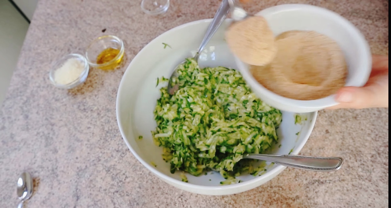 步骤4、然后把西葫芦出的水分一点点过滤挤出来!
