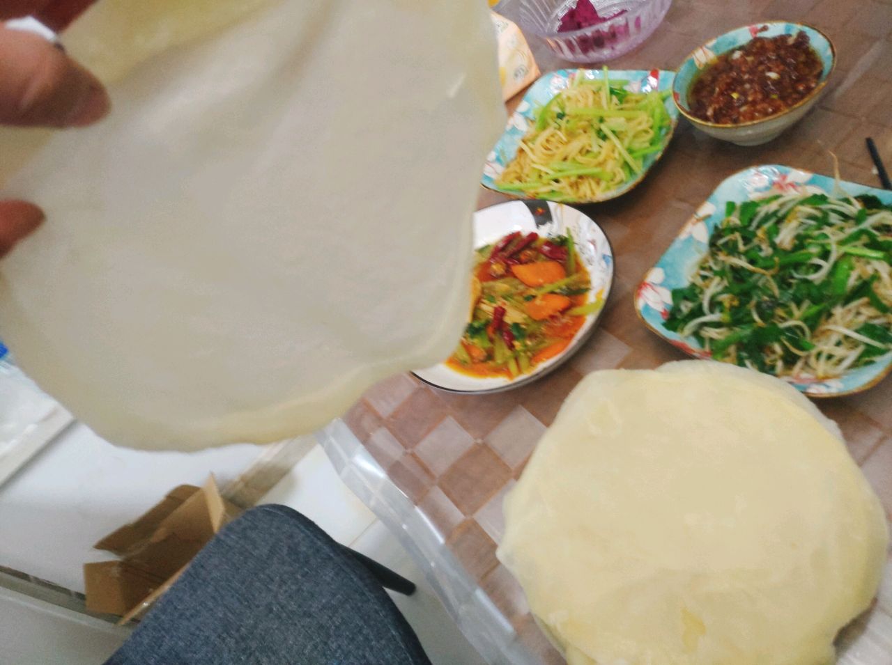 步骤5、擀薄之后蒸锅水烧开放蒸屉就可以把饼放里面了蒸十二分钟再闷两分钟然后开锅盖放到饼没那么烫了再一张张揭开