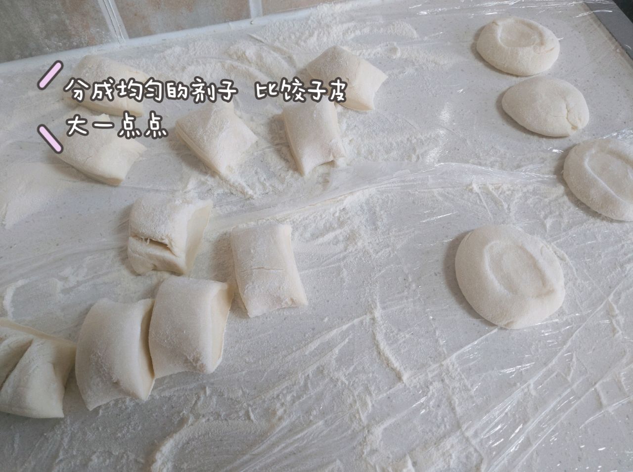 步骤1、面粉分三份两份用开水和面一份用凉水和面然后搅拌一起醒十分钟后再抹些油醒30分钟