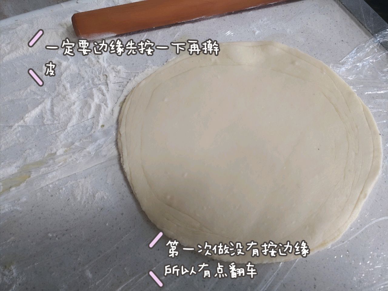 步骤4、边缘一定要按一下再擀薄(不然就会我这个样子)
