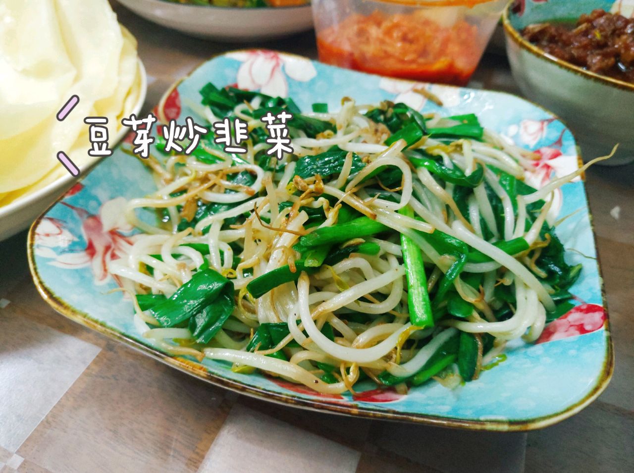 辅料:凉水适量、豆芽适量、韭菜适量、土豆一个、芹菜适量、肉馅100克、甜面酱三勺、葱蒜适量、盐适量