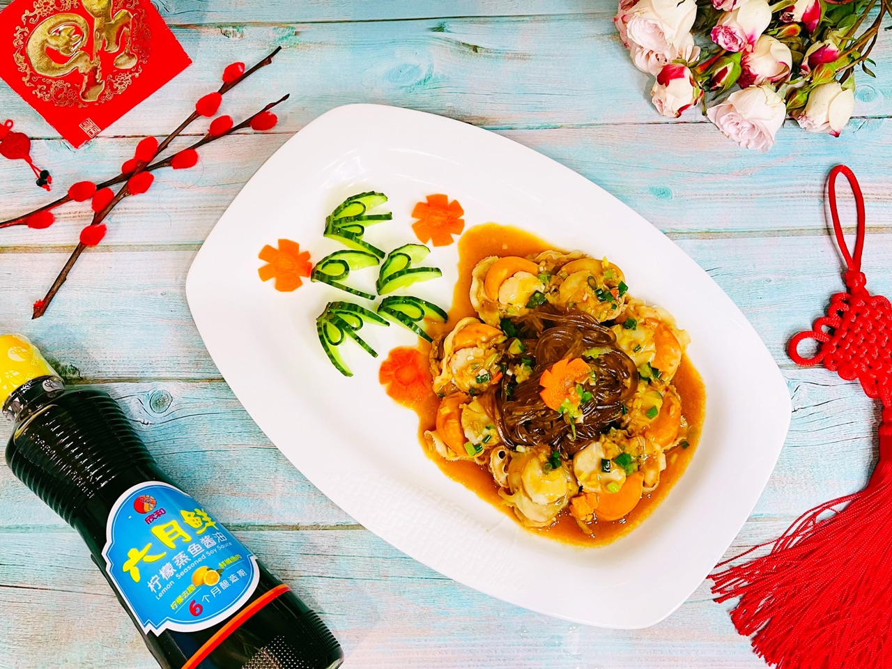味达美名厨福气汁,新春添口福“迎新团圆扇贝粉丝” ,众人皆知扇贝营养十分丰富,是高蛋白低脂肪的海洋贝类,也是非常天然的补锌、补钙、补铁的好食材,经常食用扇贝对促进脑细胞发育,活化脑细胞有极大的好处,多吃些贝类海鲜,是补锌的吸收效果最佳,扇贝也是一种具有降低血清胆固醇作用,也有抑制胆固醇在肝脏合成和加速排泄胆固醇的独特作用,从而使体内胆固醇有所下降,用欣和调味料选择合适的食材做好菜品,配上扇贝粉丝,用上六月鲜柠檬蒸鱼酱油更合色口感默契之味,去腥有独特的风味和魅力,此菜品添口福又营养健康,值得推荐分享: