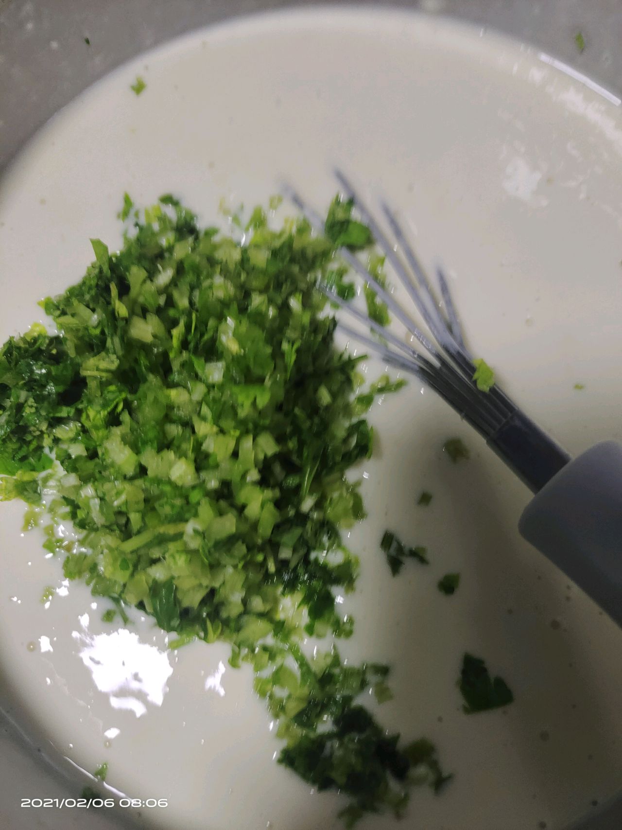 步骤1、除芹菜以外,统统调成糊,醒5-10分钟