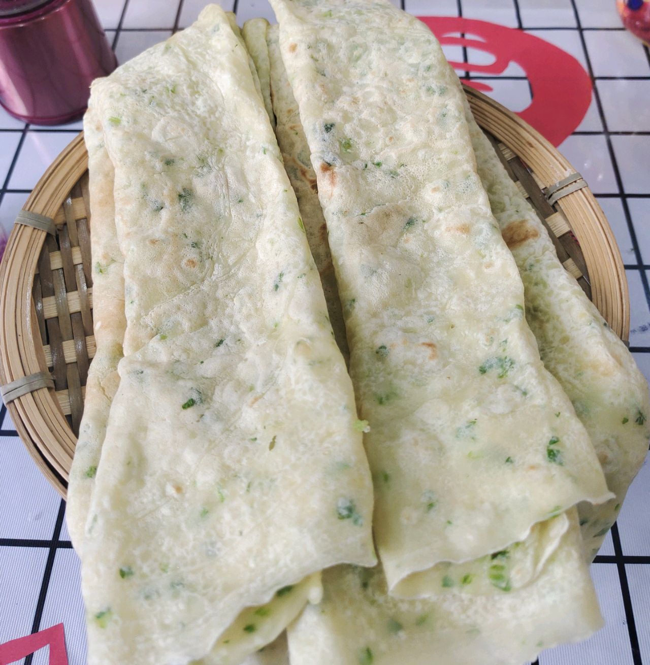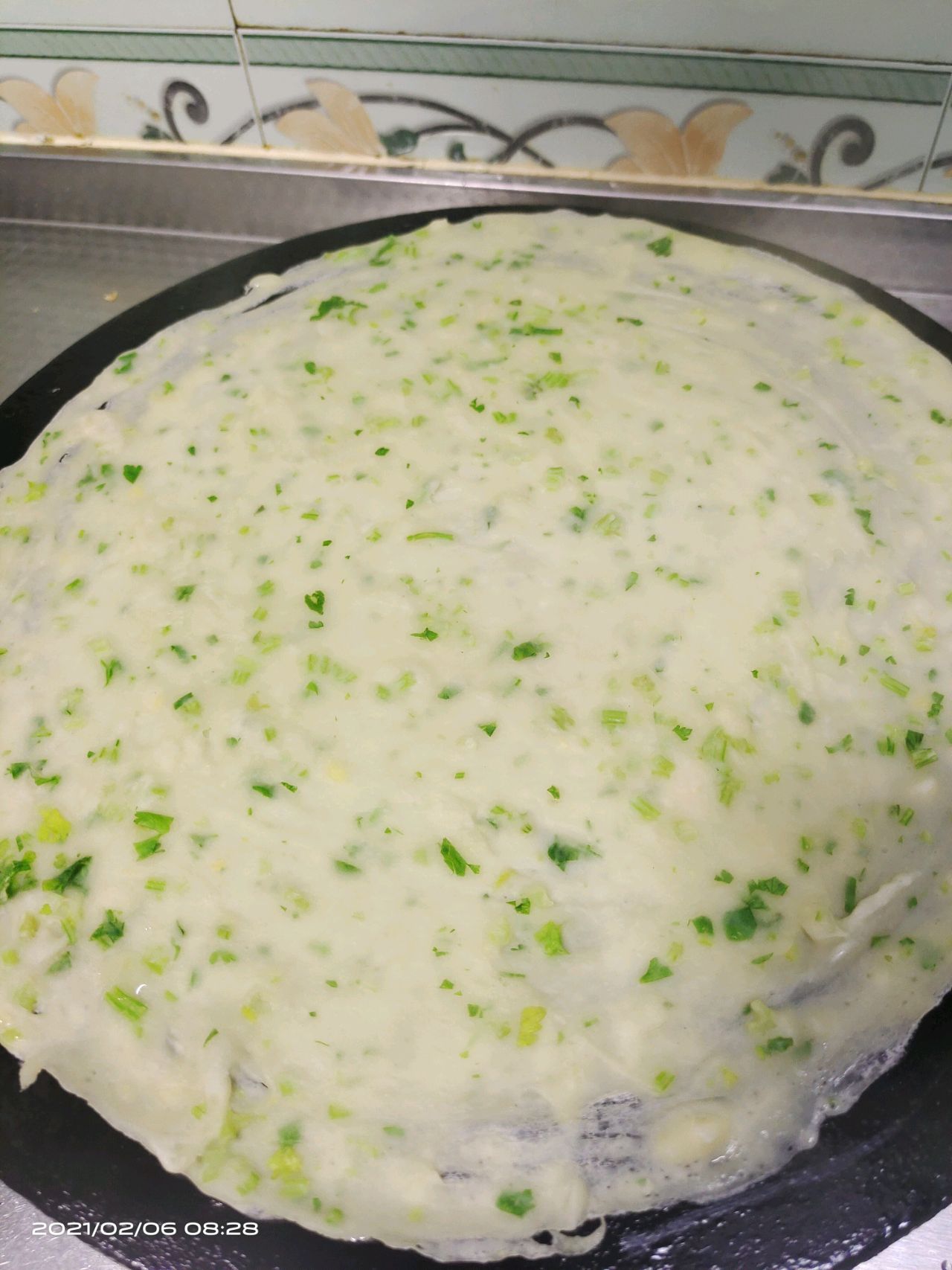 步骤6、无白色面糊就翻面,转圈使饼受热均匀,先小火,再改中火,每一个饼之前锅都必须擦油