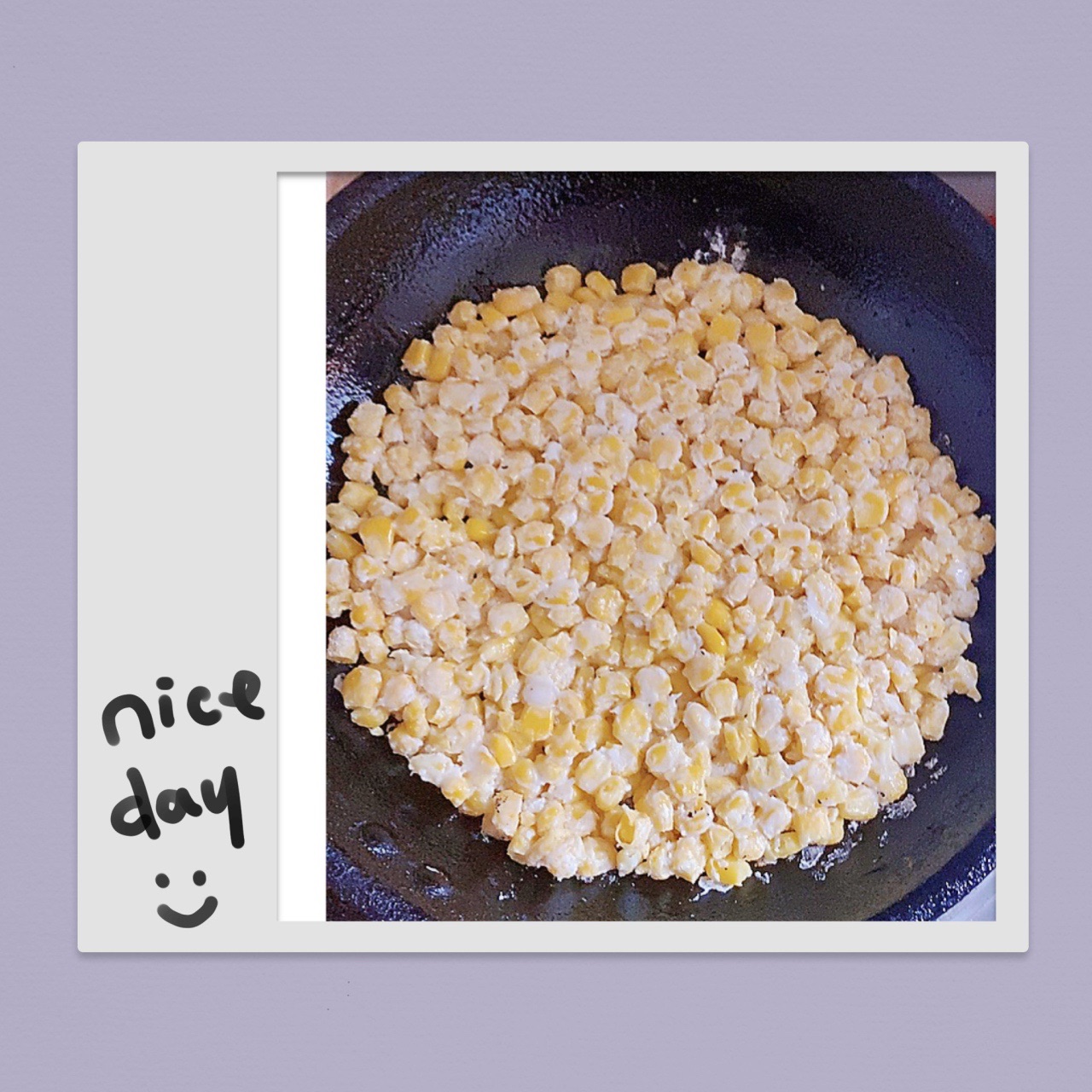 步骤2、放点油把玉米摊平,压实煎个几分钟,火候自己掌握,不要火太大
