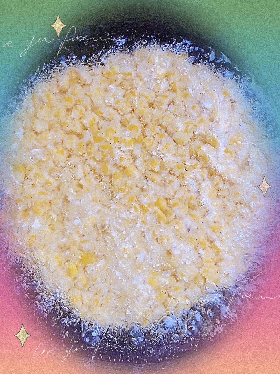 步骤3、在另外用锅把油烧热,倒在玉米上面炸至金黄,在把油倒出来,就可以了,