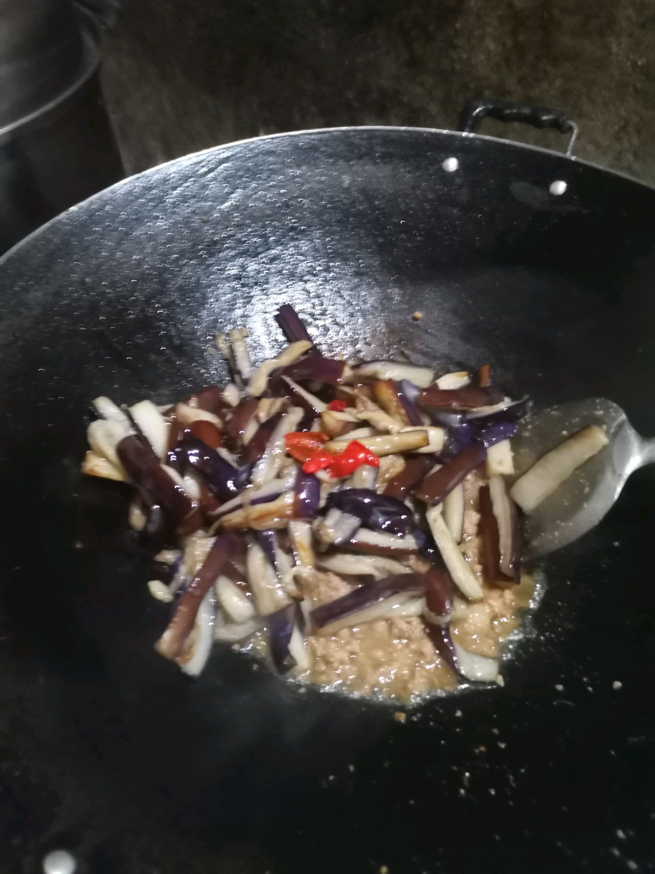 主料:紫茄子4根、里脊肉适量