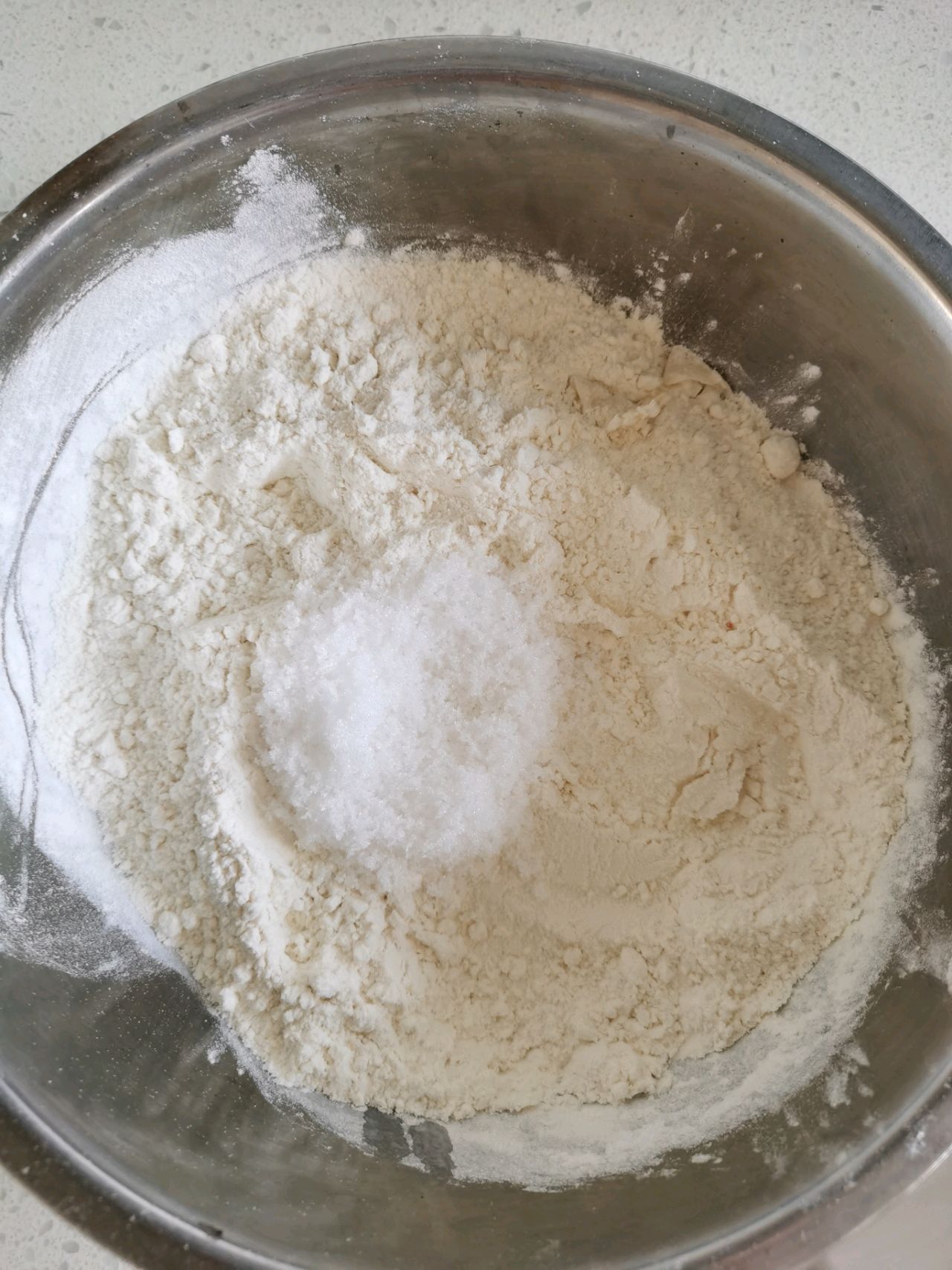 辅料:酵母4克、白糖30克、温水、饼芯、面粉60克、温水适量、食用油适量