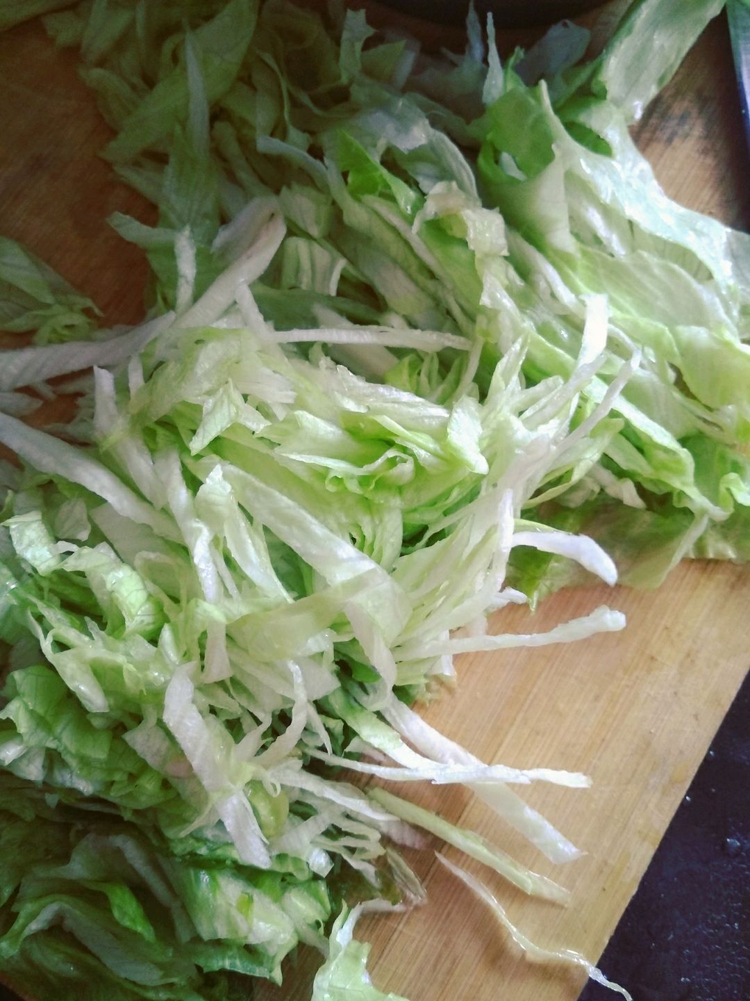 辅料:盐2克、鸡精1勺、干拌辣椒1勺、生菜10片