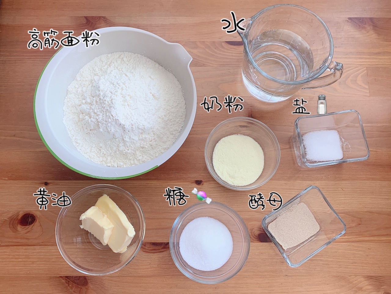 主料:高筋面粉500克、白砂糖40克