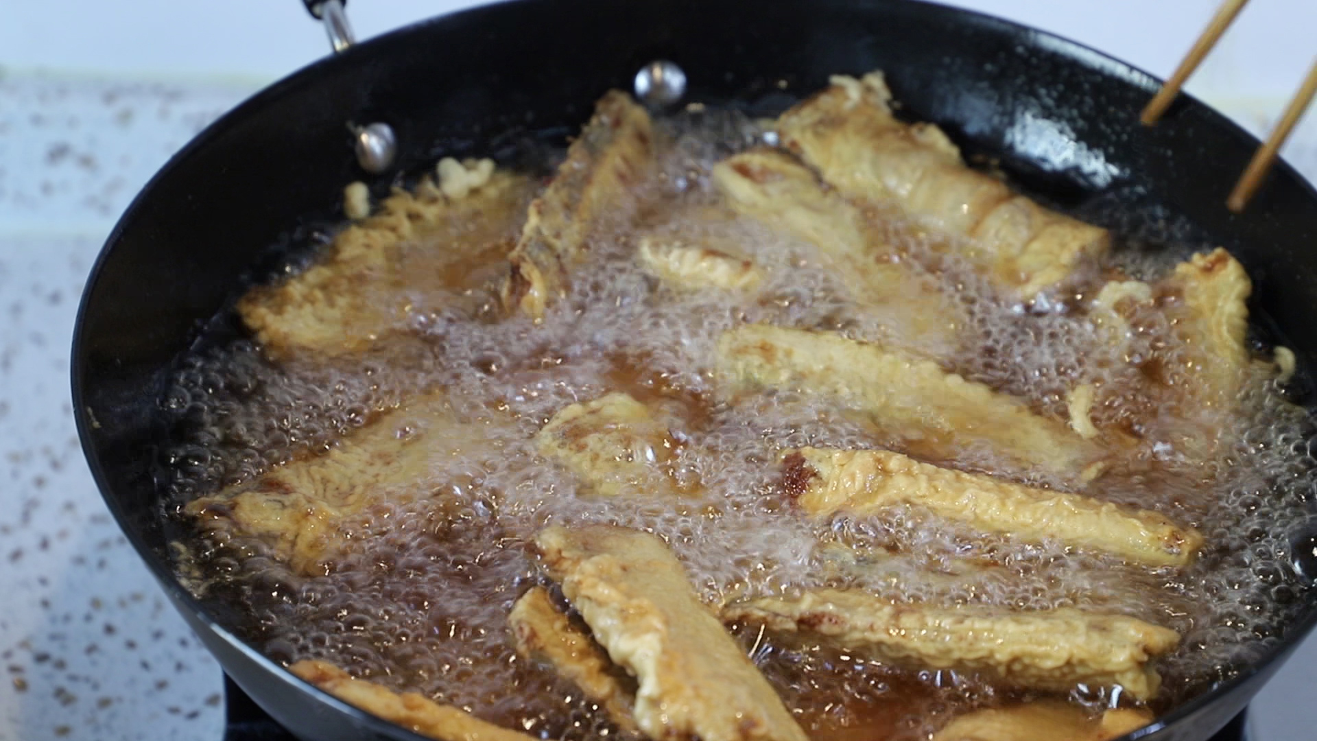 步骤12、这样炸出来的带鱼特别酥脆,吃起来特别香!
