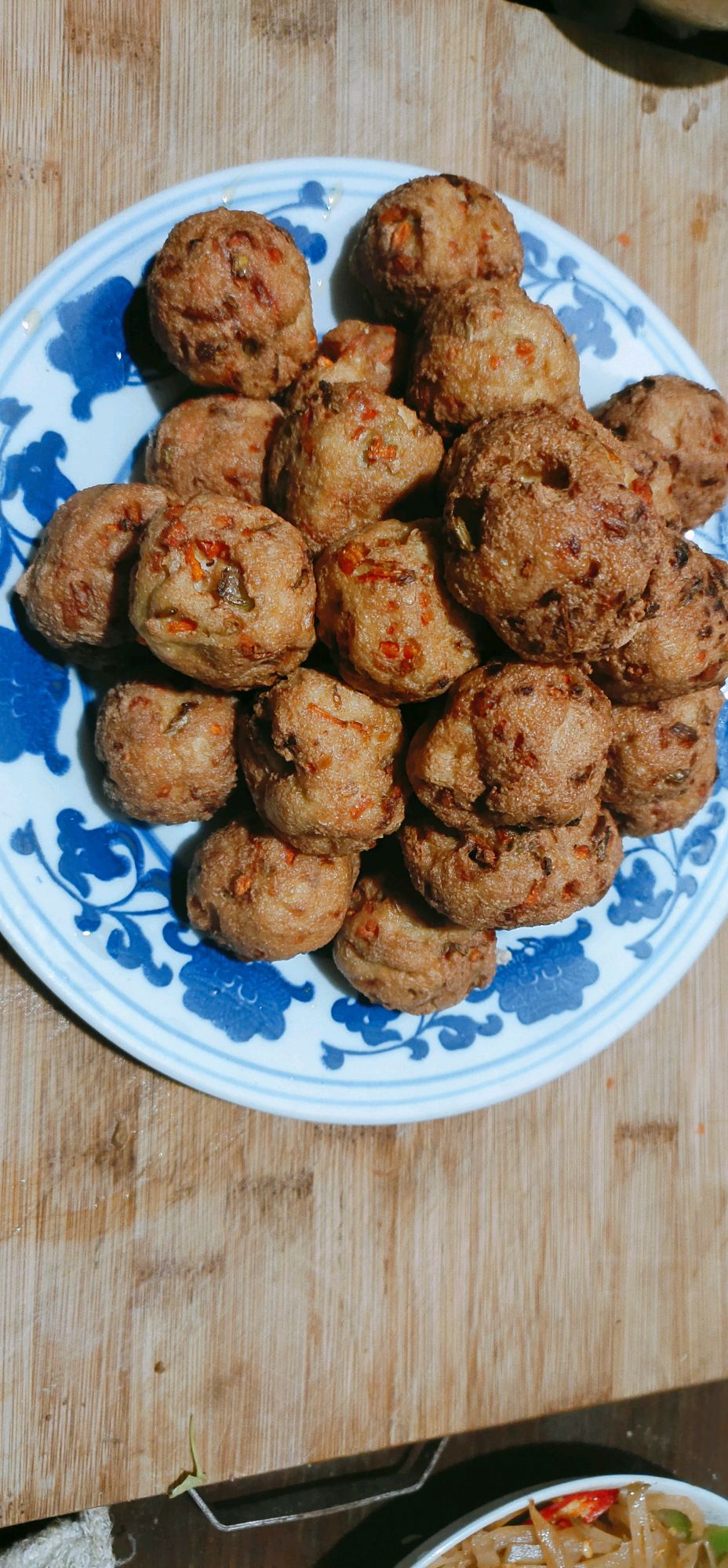 步骤8、起锅烧油,7成油温放丸子炸个5,6,7,8分钟熟不熟我都靠尝