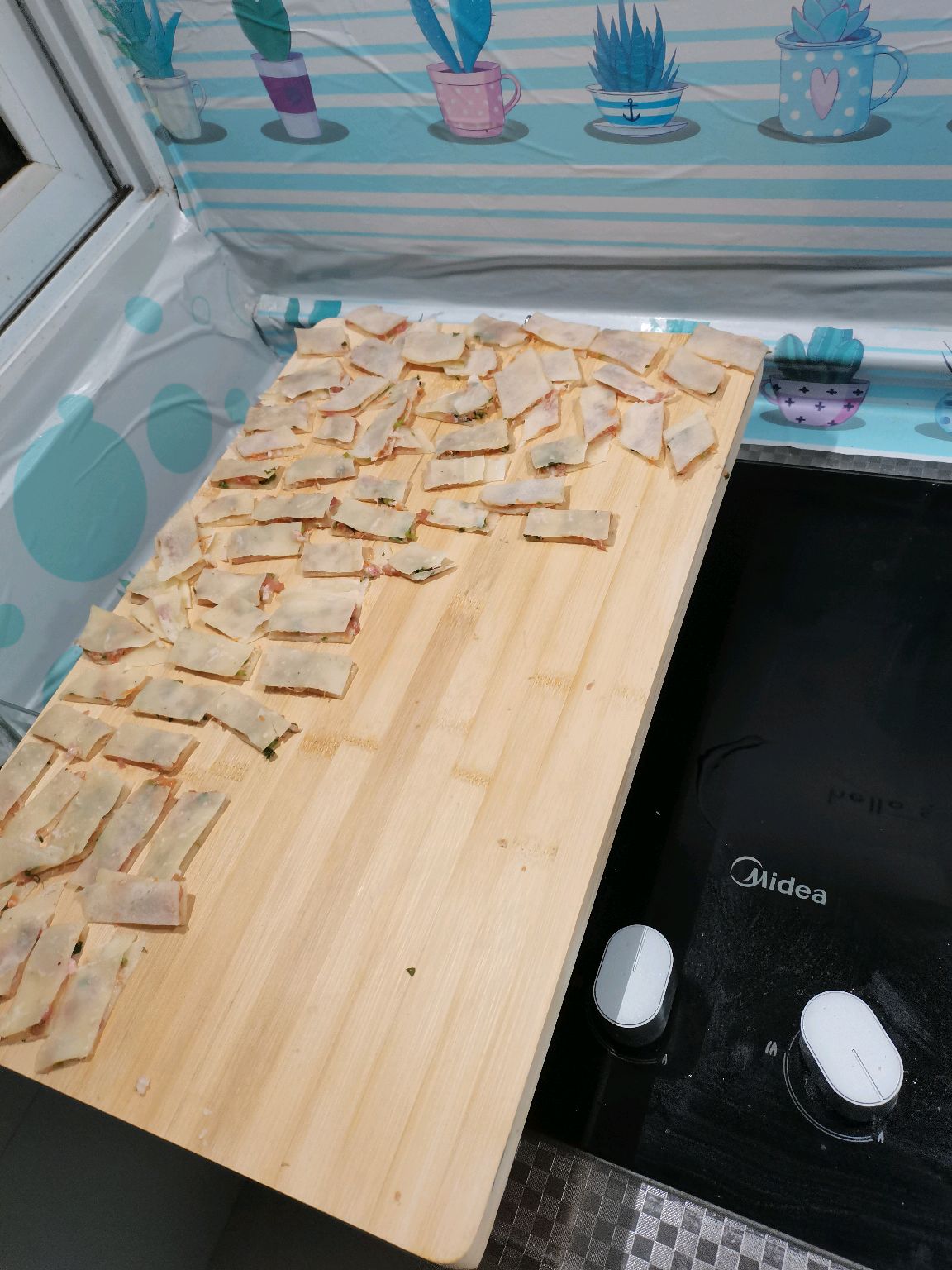 步骤5、因为第一次做,切的不太好,不均匀,切成菱形,或者你自己喜欢的形状都可以