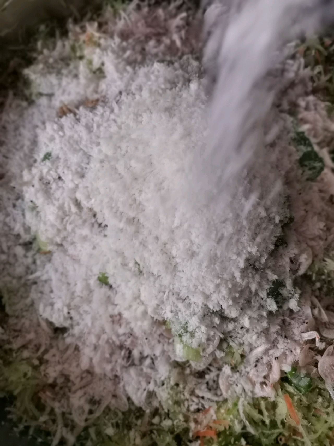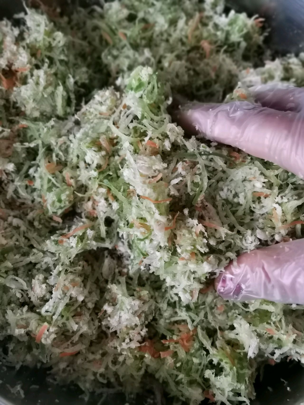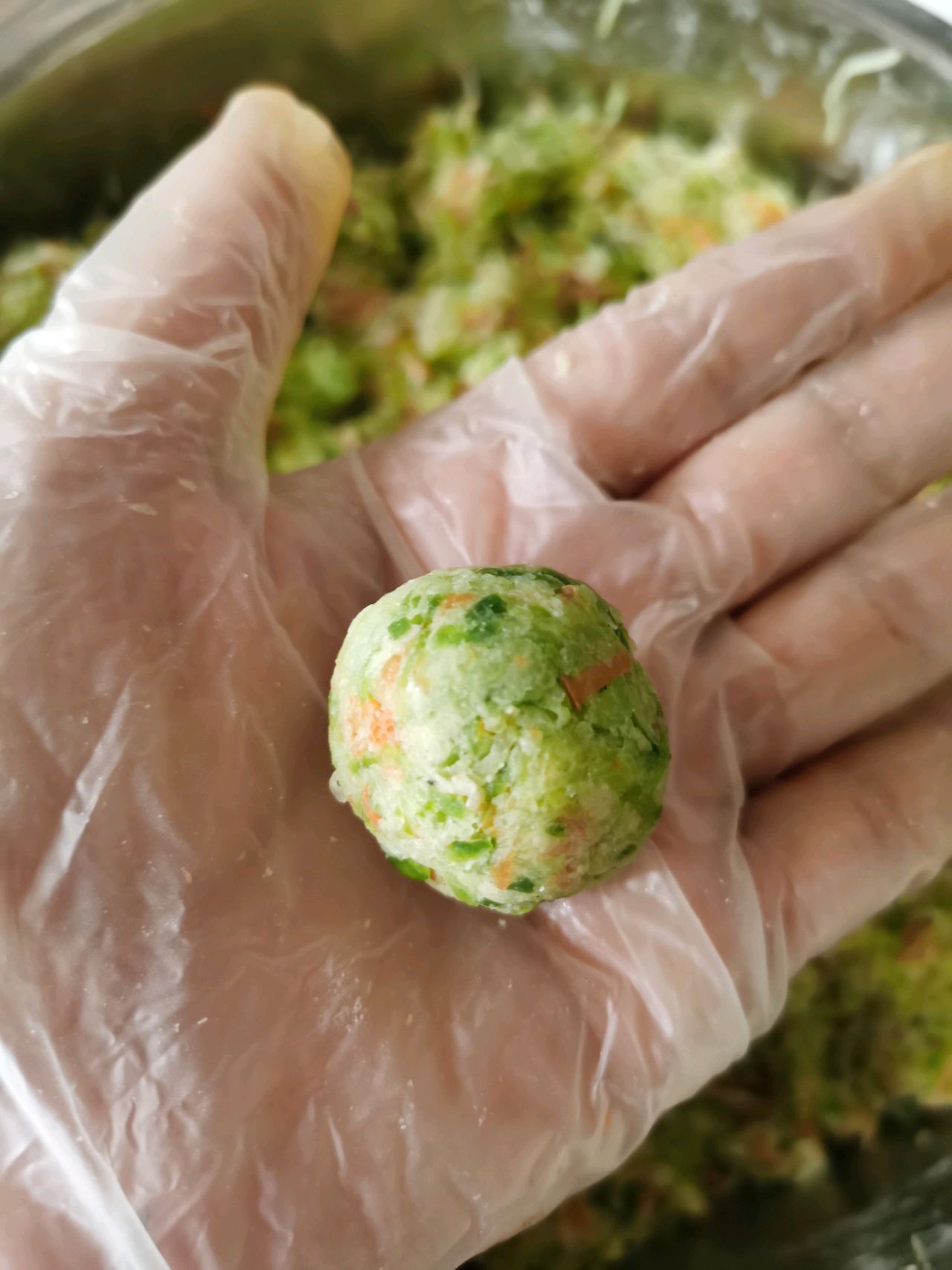 步骤13、轻轻松松团成小圆球,使点劲儿,别下锅散花了