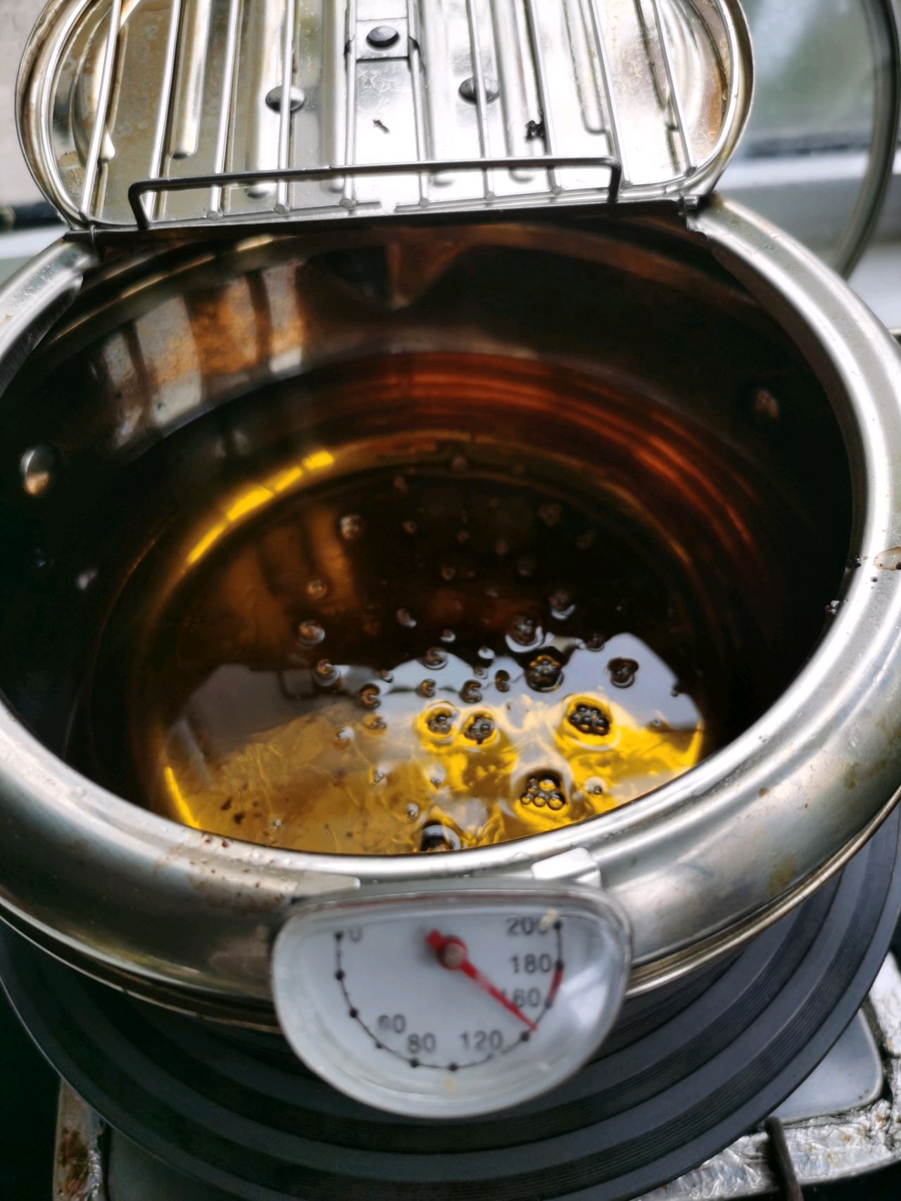 步骤15、油温140°放入丸子,不要太多,用筷子轻轻拨动