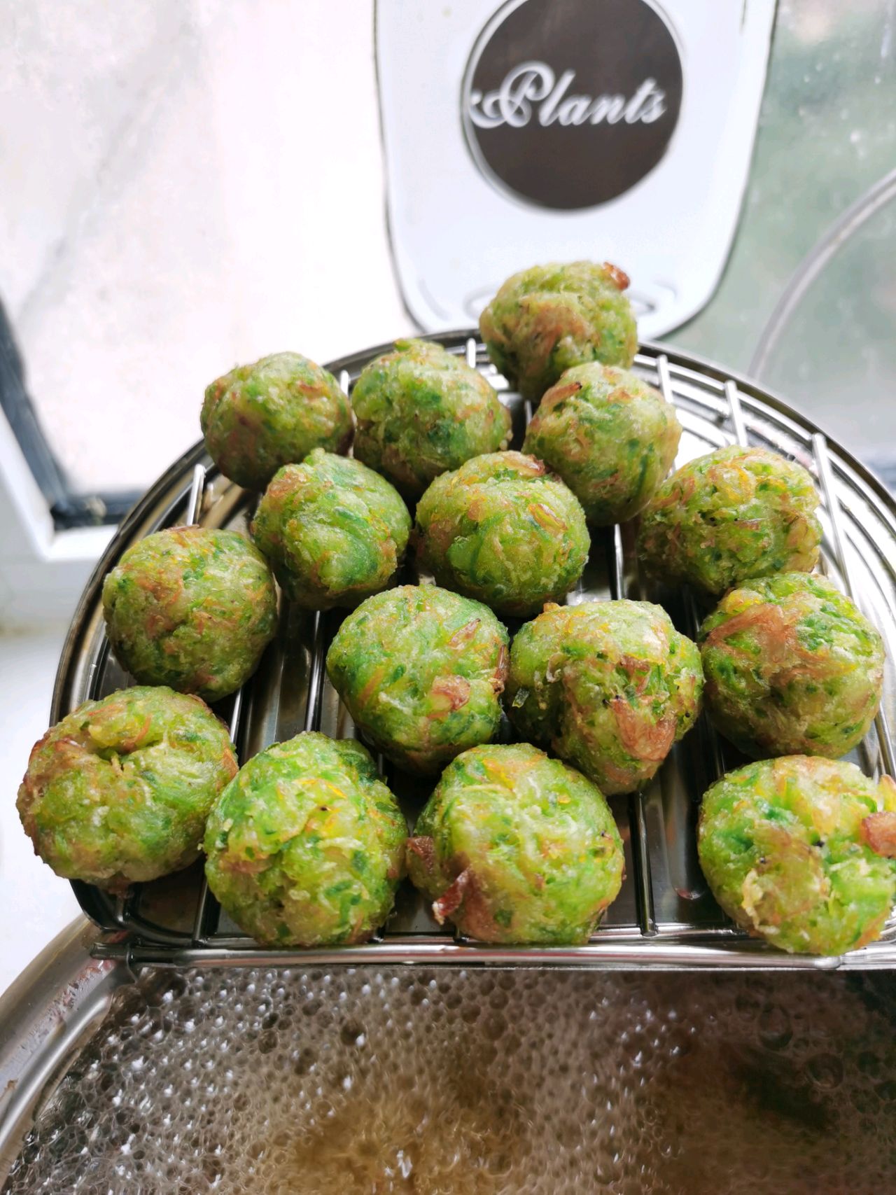 步骤16、炸成型,浮起来就可以了,翠绿翠绿的好看。