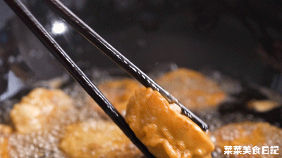 步骤12、前1分钟先不要翻动,炸至定型后再翻动,捞起沥干油份