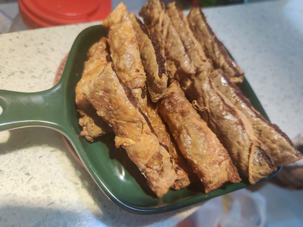 辅料:油皮多张、葱一根、姜末10克、花椒大料水一碗、花椒粉2勺、白胡椒粉1勺、十三香1勺、生抽3勺、老抽2勺、盐5克、淀粉一大碗