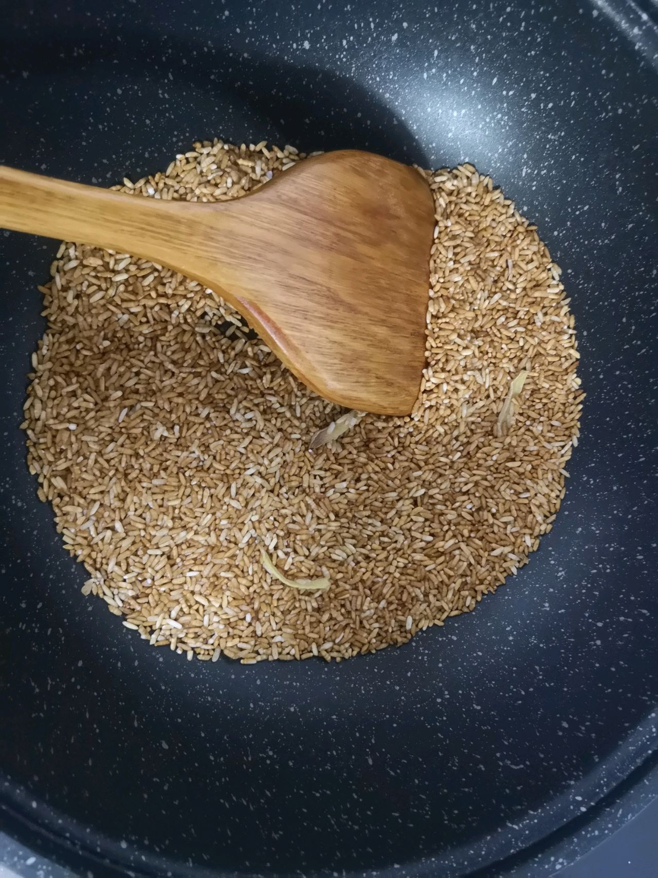 步骤4、泡着喝很香,米香味很浓,米炒熟了也可以吃
