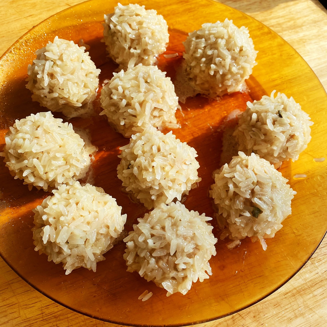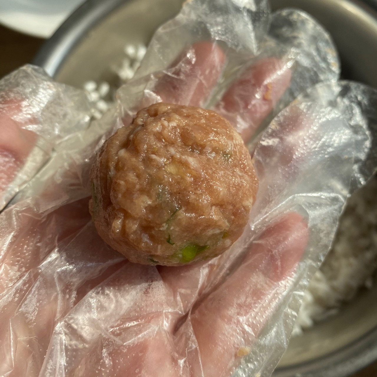 小时候快过年的时候,妈妈都会做两样大菜,一个是这个糯米丸子,另一个是蛋卷,这两样平时都是见不到的。现在想起这个画面,都是幸福的感觉。后来发现姥姥家也会做这道菜,我们说糯米丸子,珍珠丸子,姥姥都听不懂,会一直执着地说,这不就是蓑衣丸子嘛。不过很有意思,各家做的味道都不一样,记忆中还是妈妈的最好吃。