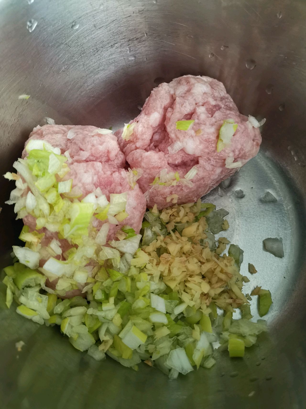 步骤1、肉馅加入葱末、姜末