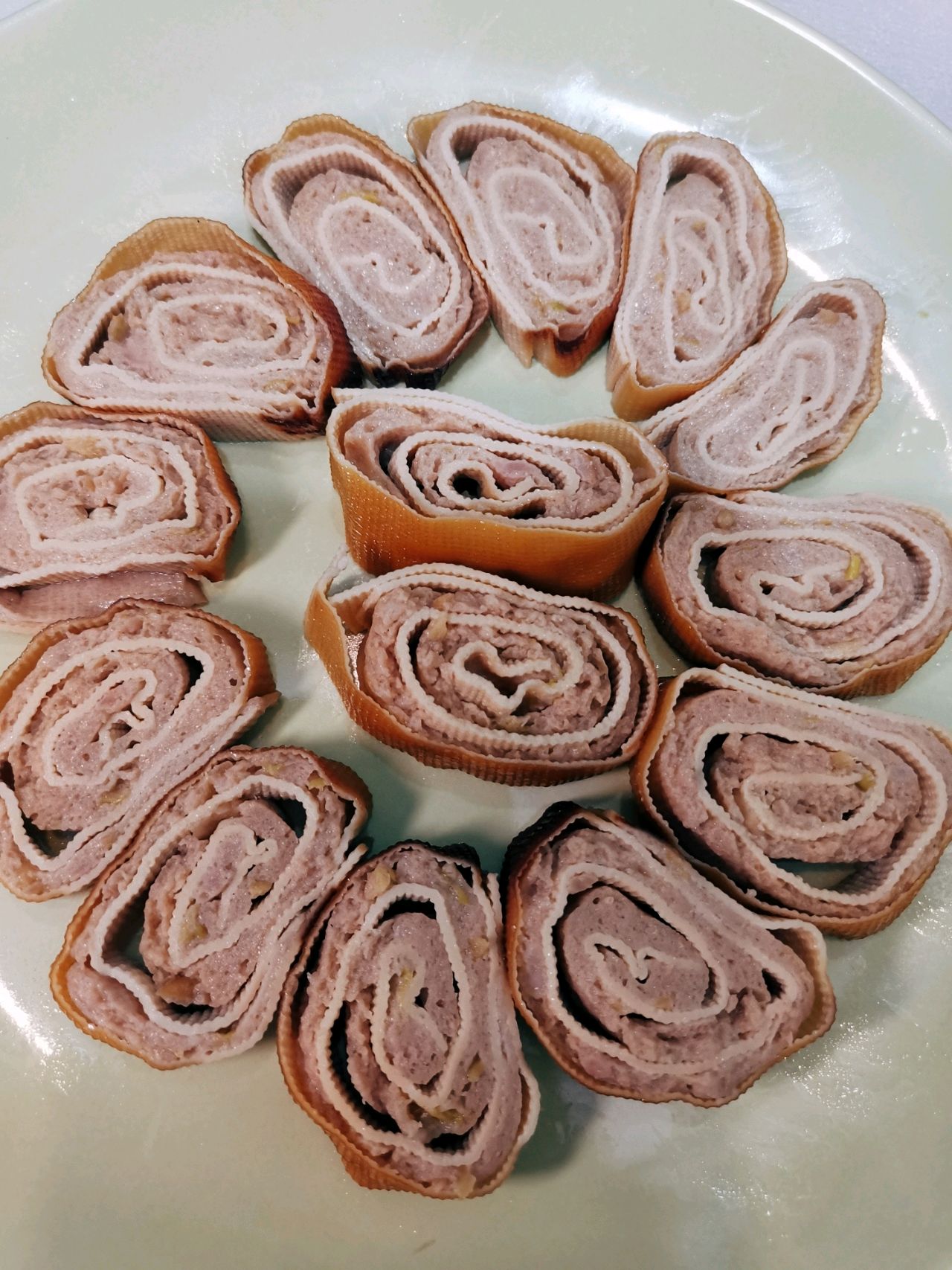 步骤9、蒸好的豆皮卷
