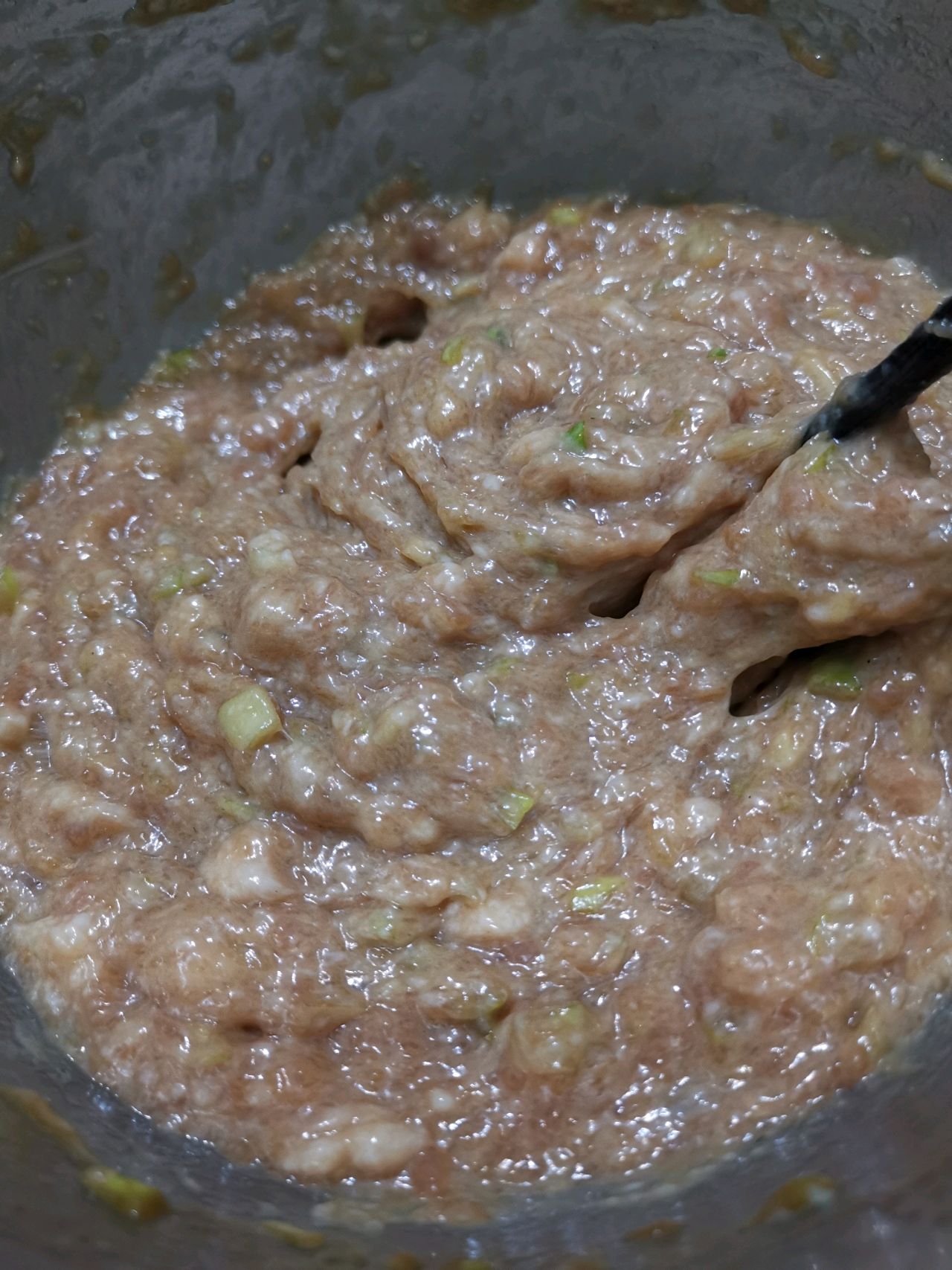 步骤5、打到肉馅粘稠上劲了就好啦