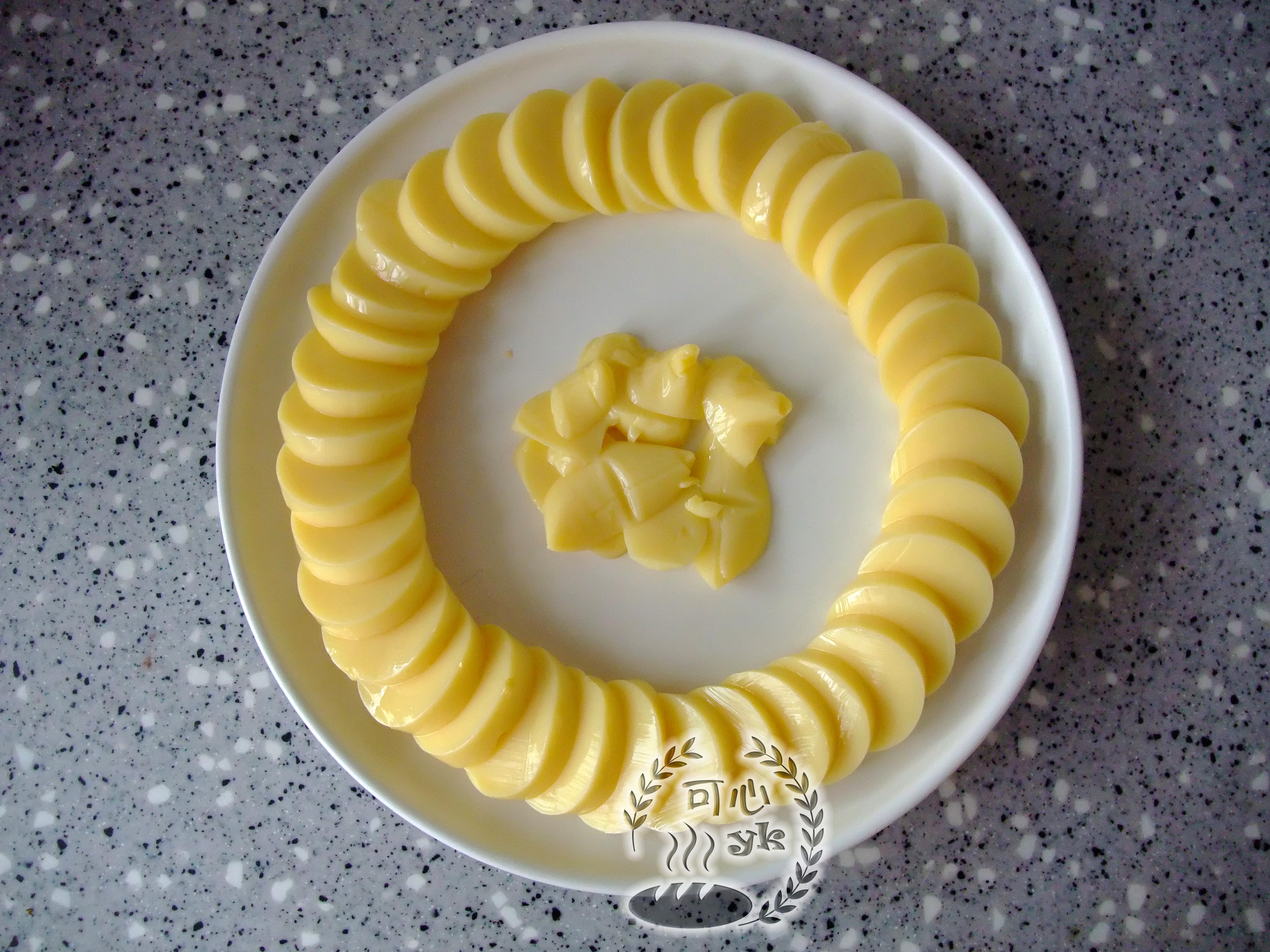 步骤4、将豆腐在盘中摆放整齐,头尾边角料放中间。