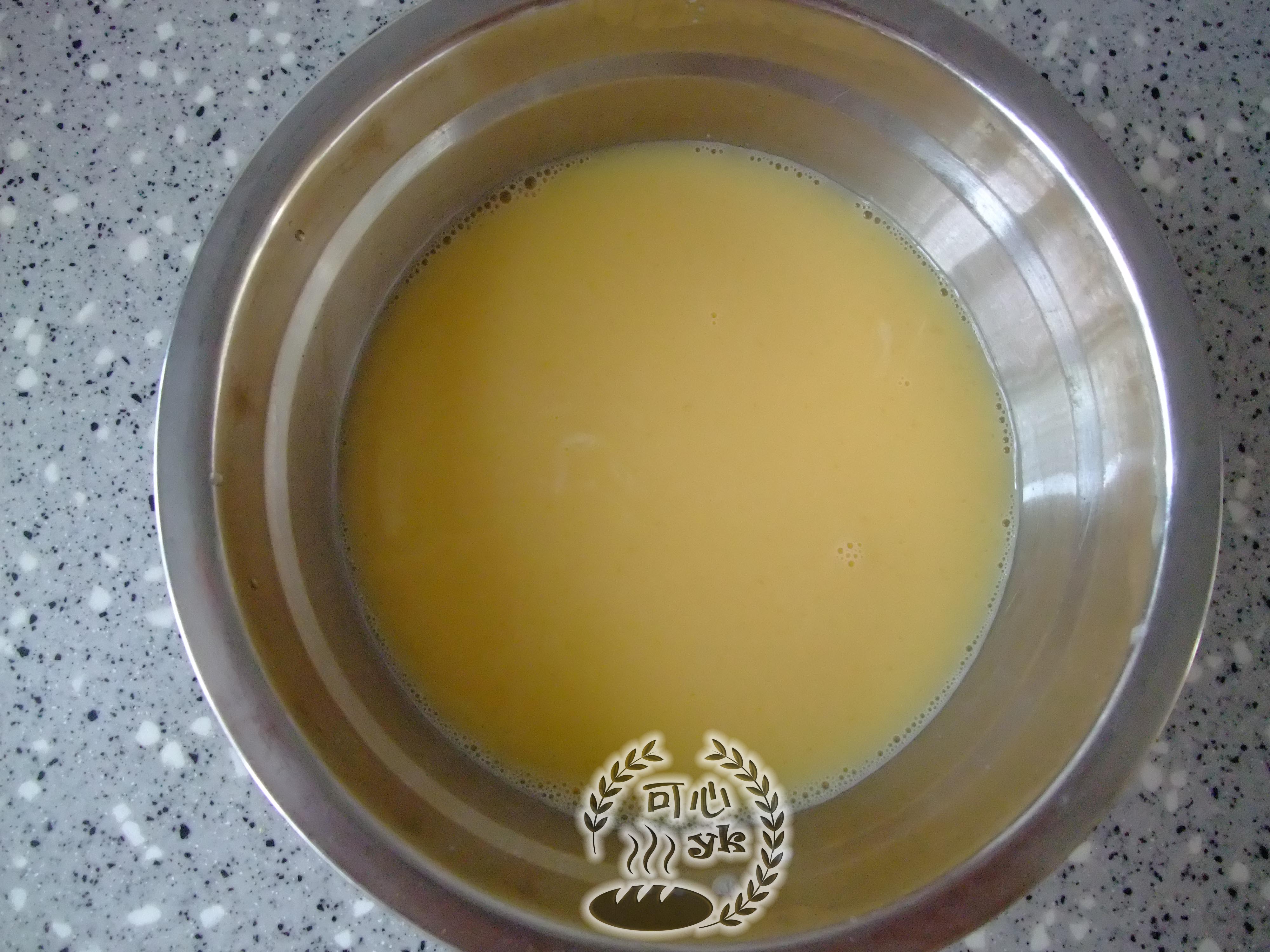 步骤6、鸡蛋打散,加入1.5倍的温水!
