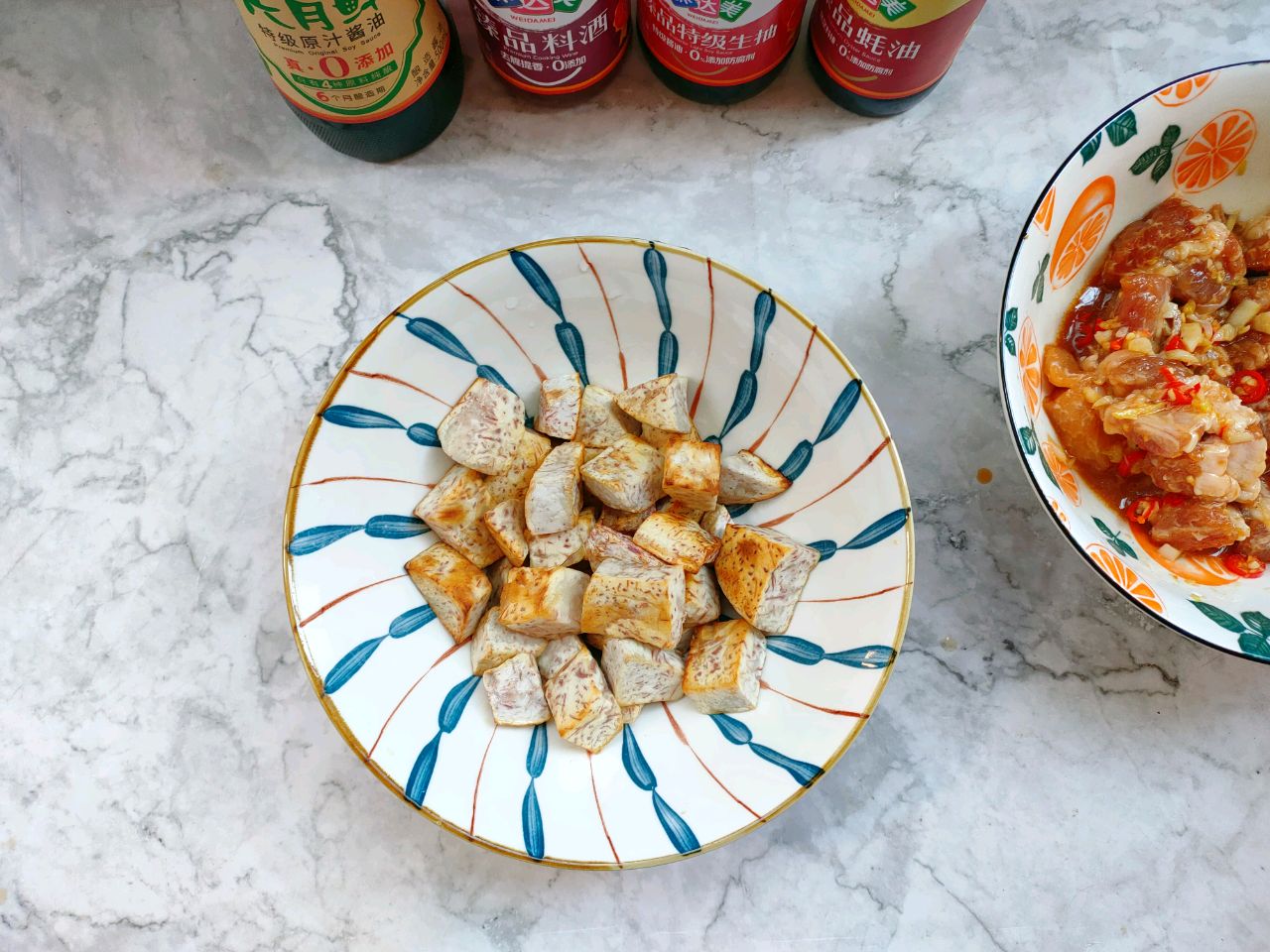 如果喜欢有嚼劲的排骨肉,建议蒸的时间在20分钟左右。芋头煎一下是让芋头的口感更加好。