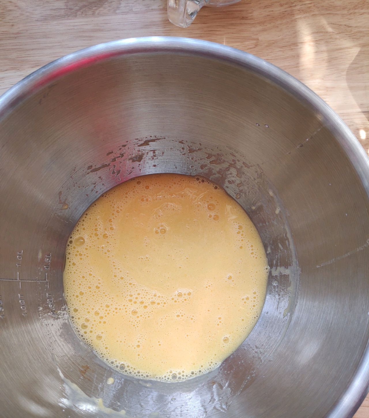 步骤7、将打发好的蛋白和准备好的蛋糊混合均匀