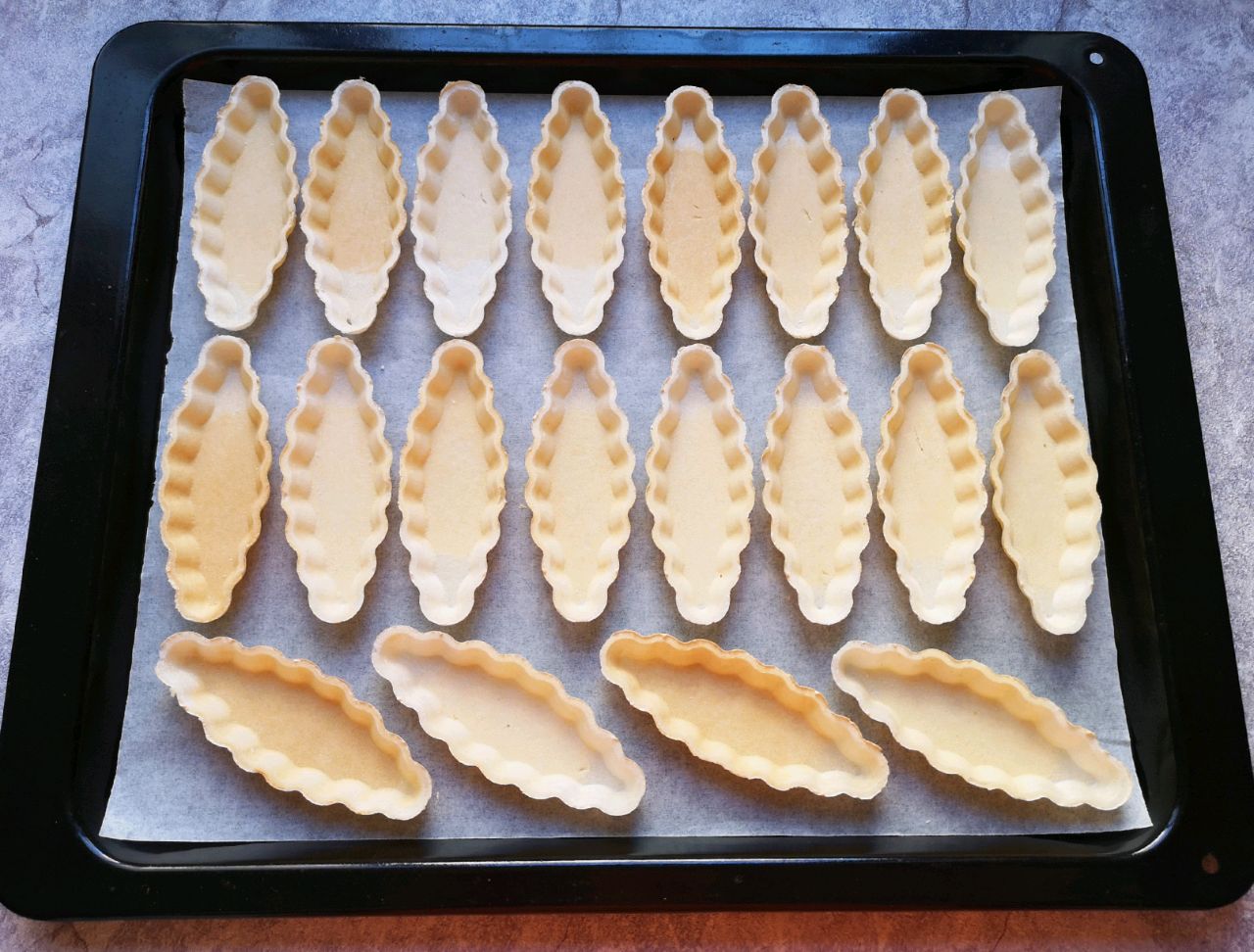 步骤8、烤盘里铺上油纸,放上糯米船。