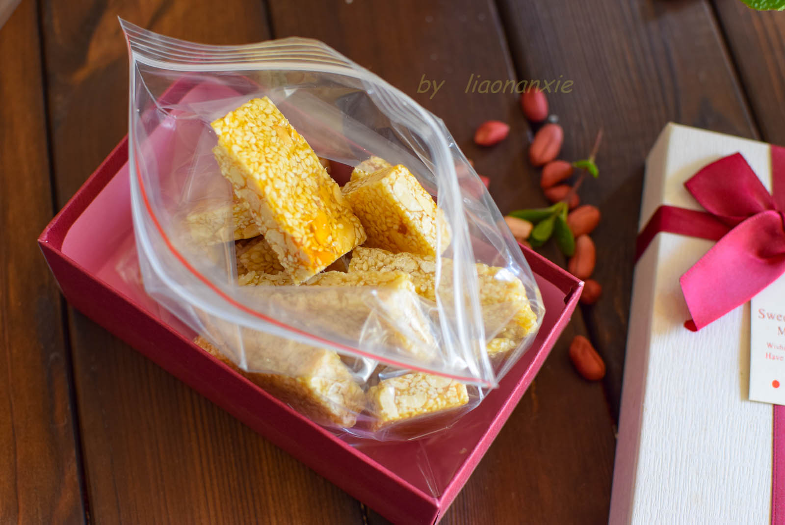 步骤10、完全放凉后装入密封袋保存。给自制麻糖加上好看的包装盒,当个伴手礼也挺好的。
