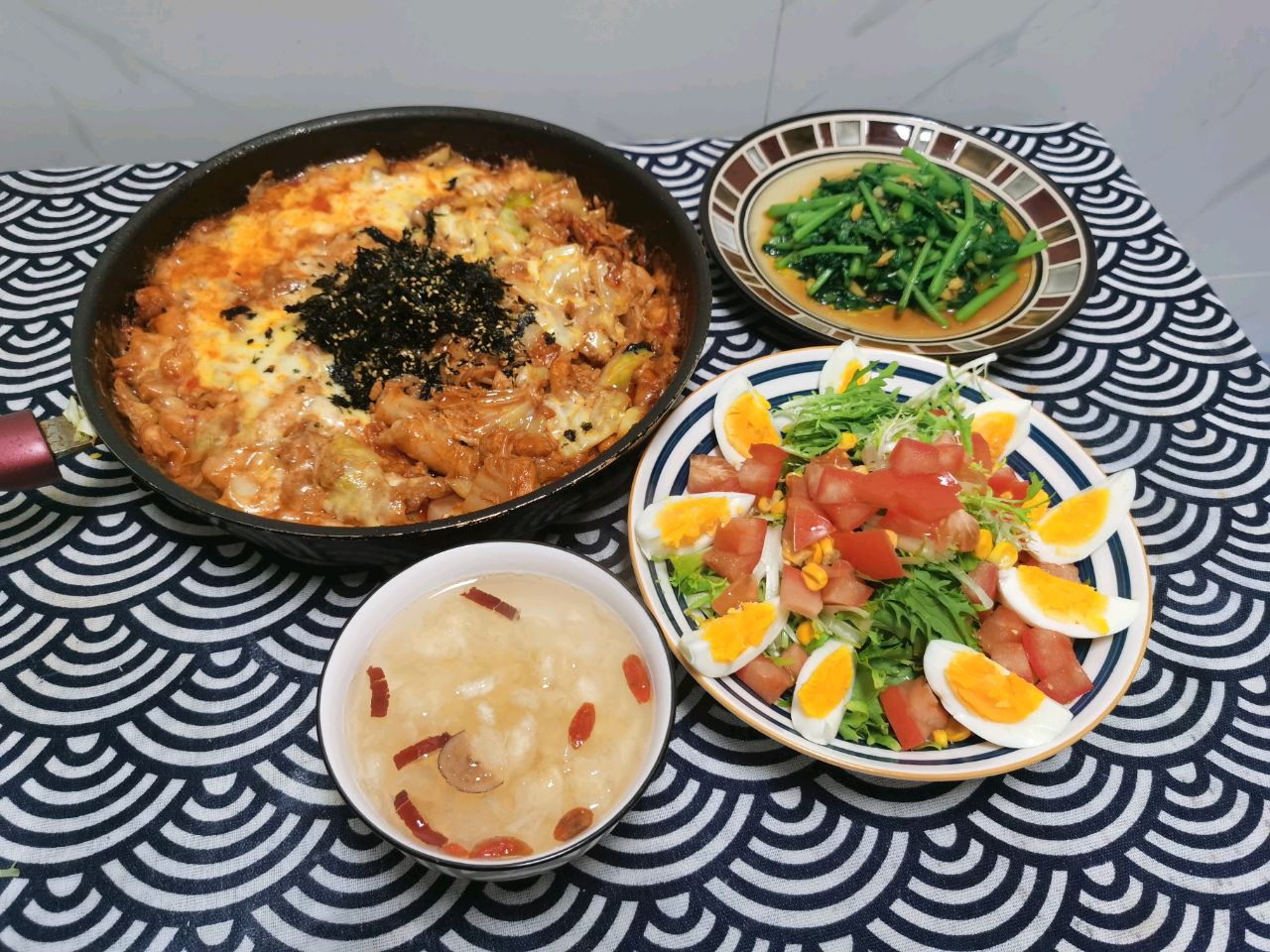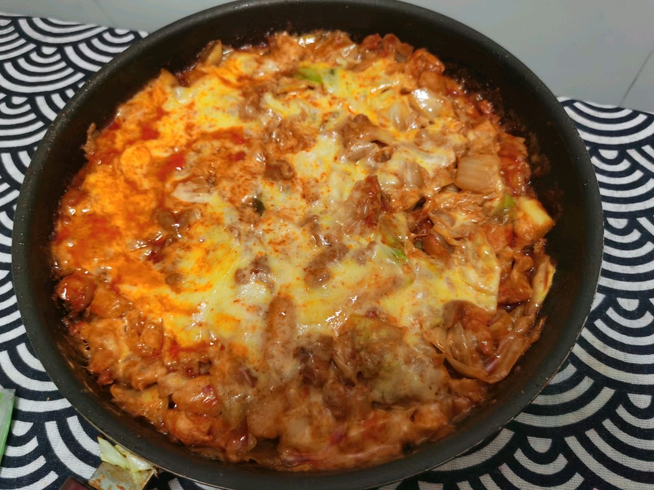 辅料:糖1/2勺、洋葱1/4个、辣白菜适量、圆白菜1/4个、芝士适量、韩式辣酱1大勺、辣椒粉2勺、海苔碎适量
