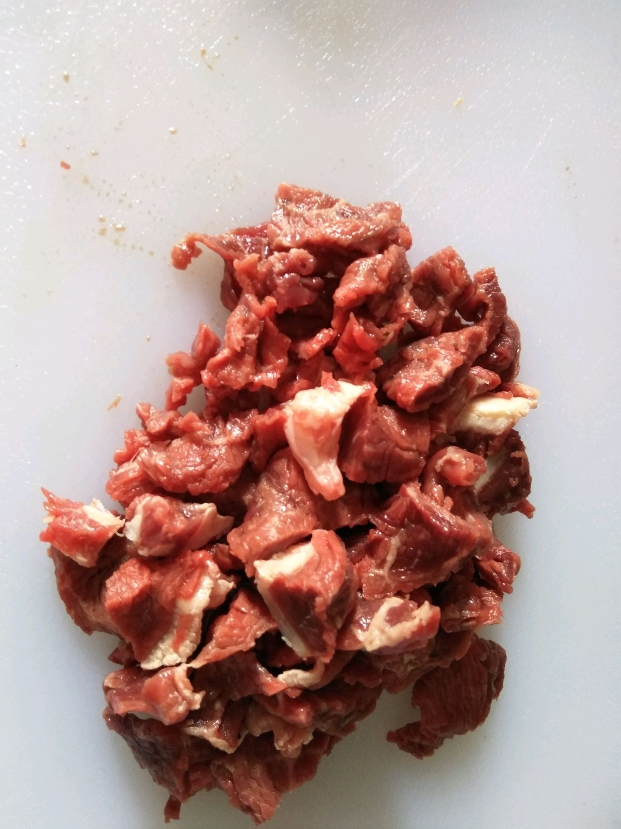 步骤1、牛肉切粒备用