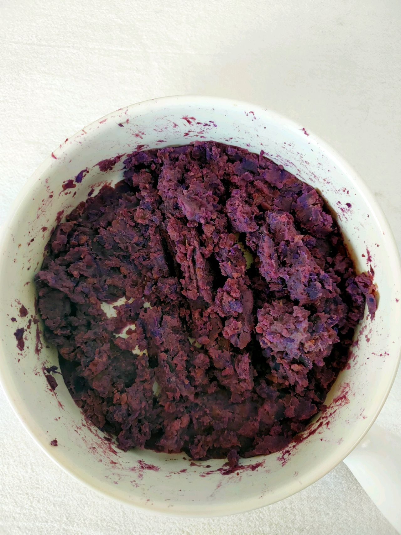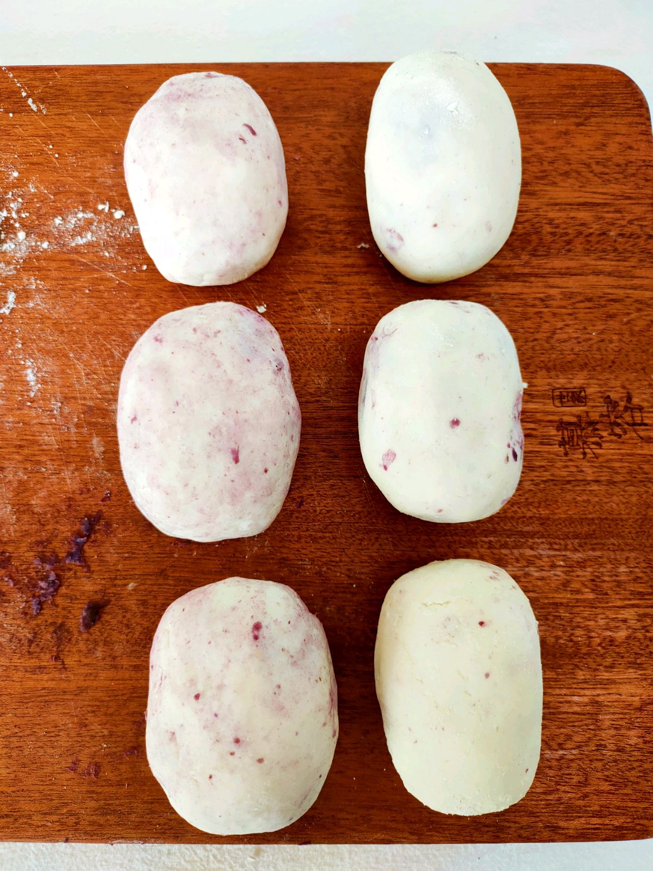 步骤4、把紫薯分成6等份,放芝士片搓成圆球