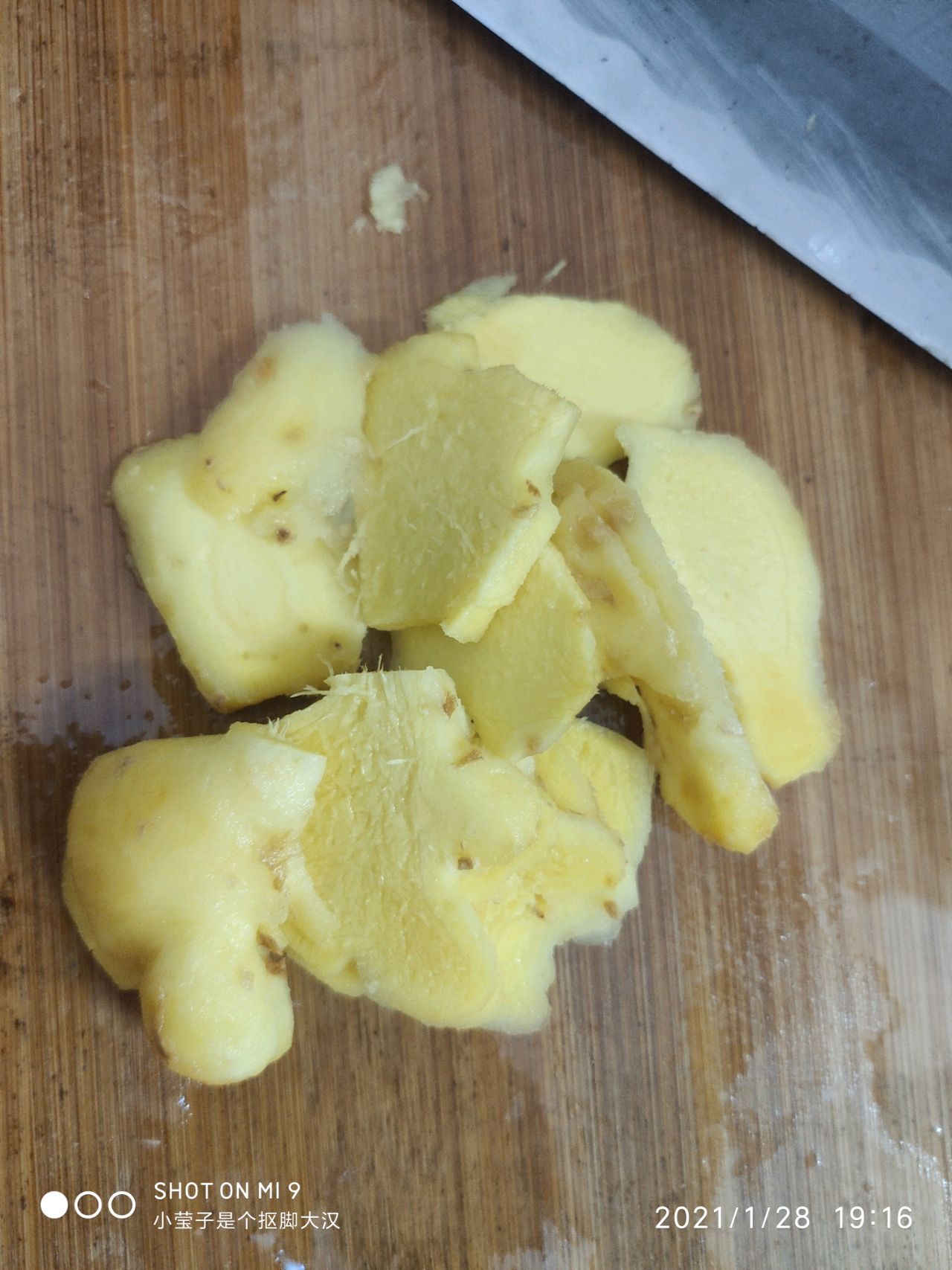 步骤2、切好姜片备用,多一点也可以的